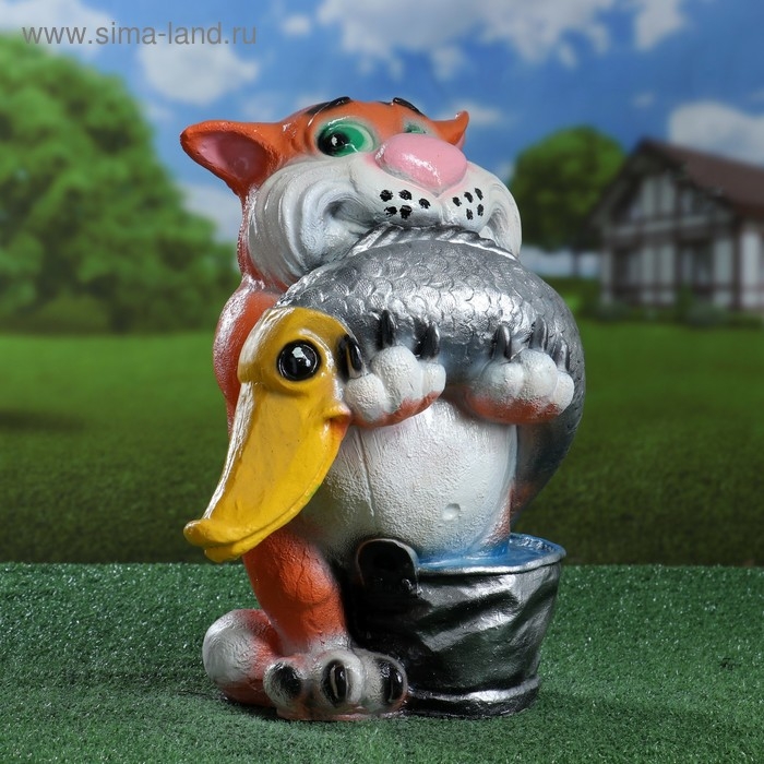 Садовая фигура "Кот рыбак средний" 41х23х18см