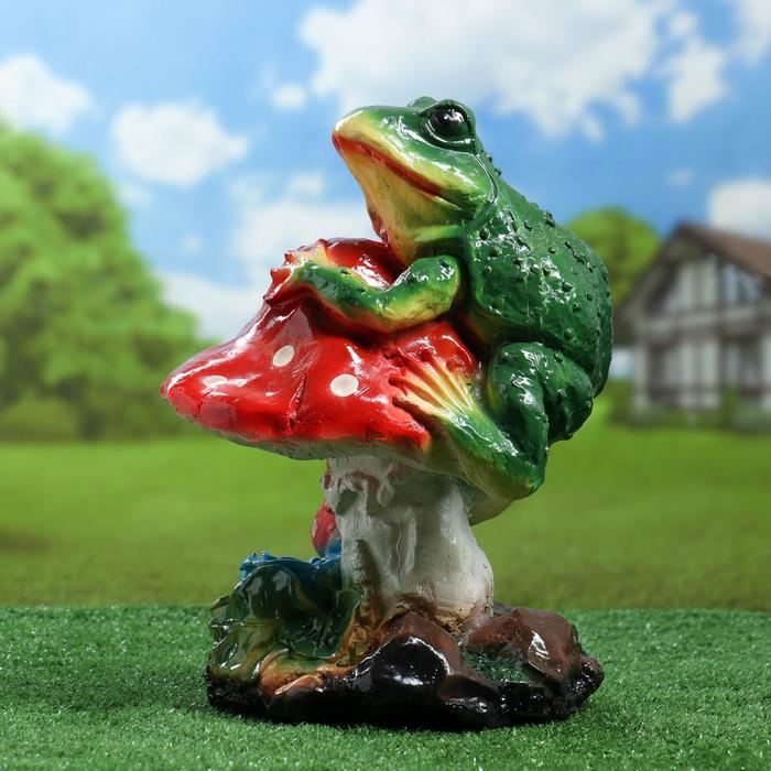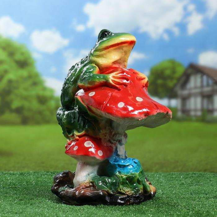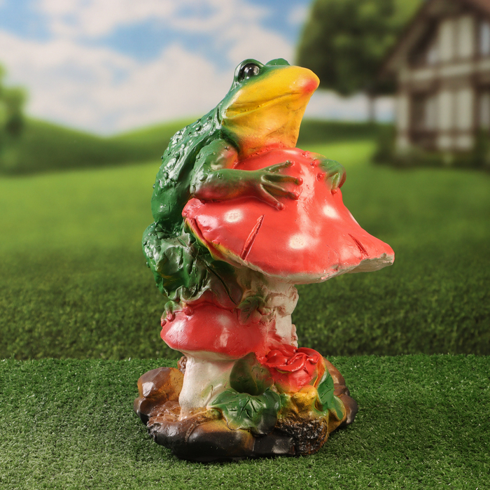 Садовая фигура "Лягушка на мухоморе" 27х26х38см