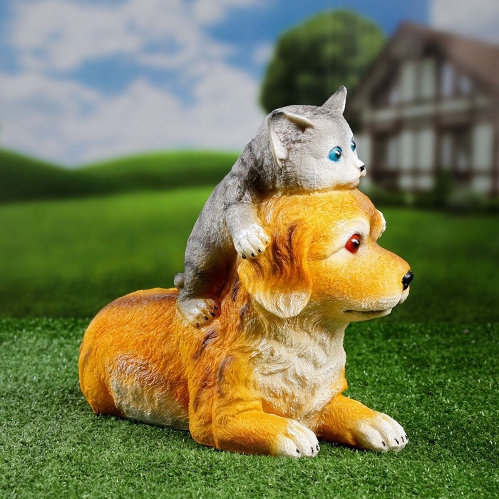 Садовая фигура "Щенок с котенком" 32х20х25см