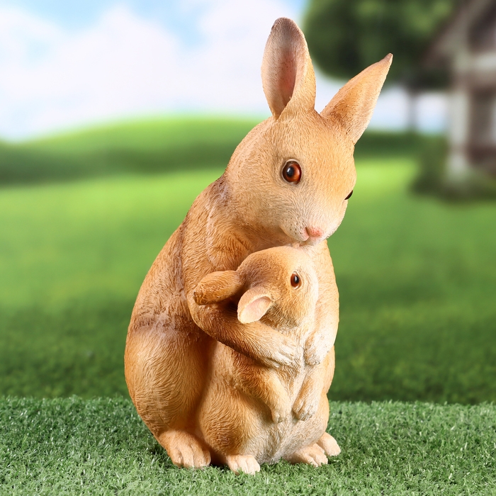 Садовая фигура "Зайчиха с зайчонком" 13х12х25см