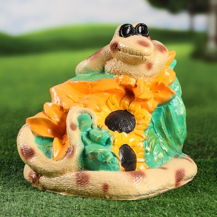Садовая фигура "Змея с подсолнухами" зеленая, 26х30х25см