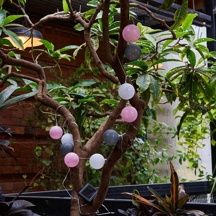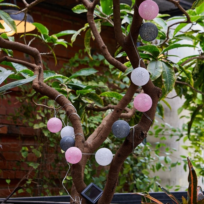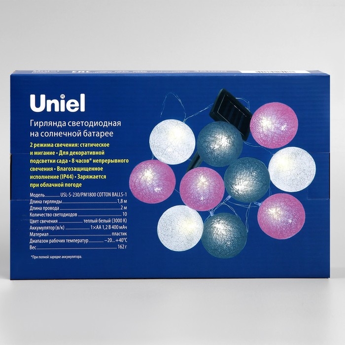 Садовая гирлянда на солнечной батарее «Клубки» Uniel, IP44, 1,8 м, теплый белый