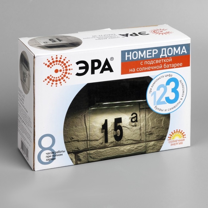 Садовый светильник «ЭРА» на солнечной батарее «Номер дома», 20 × 18 × 5 см, свечение белое
