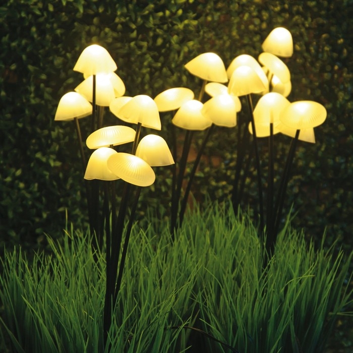 Садовый светильник на солнечной батарее «Волшебные грибы» Uniel, LED, IP44, 3000К, 430х2000х55 мм, цвет белый и чёрный