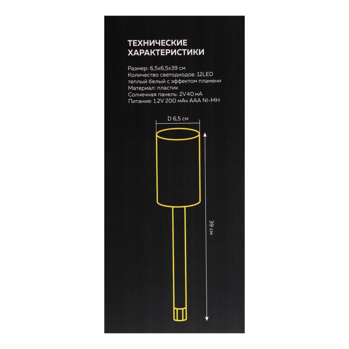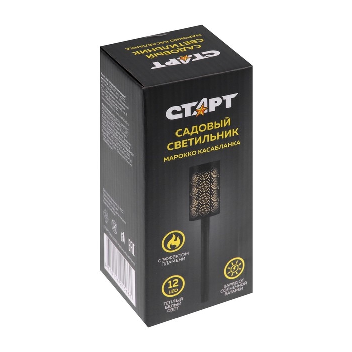 Садовый светильник «Старт» «Марокко» на солнечной батарее, 6.5 × 39 × 6.5 см, эффект пламени
