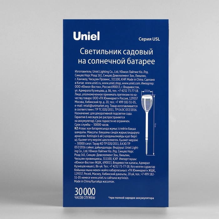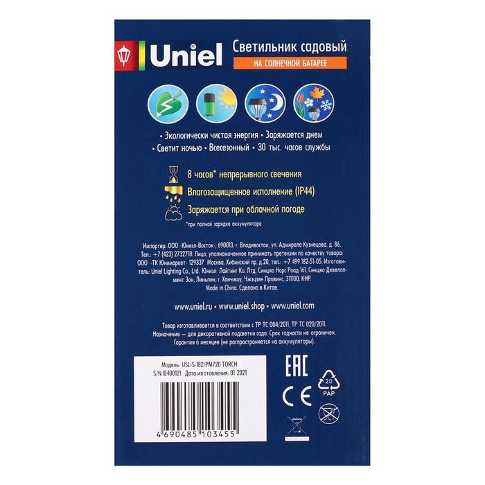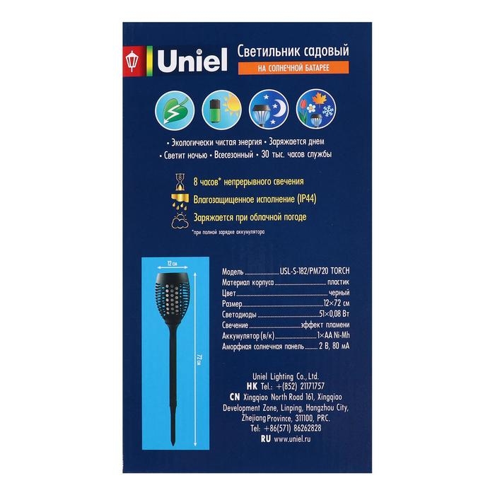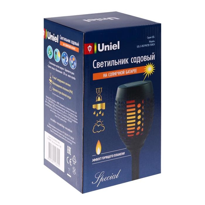 Садовый светильник Uniel на солнечной батарее «Факел», 10 × 73 × 10 см, эффект пламени