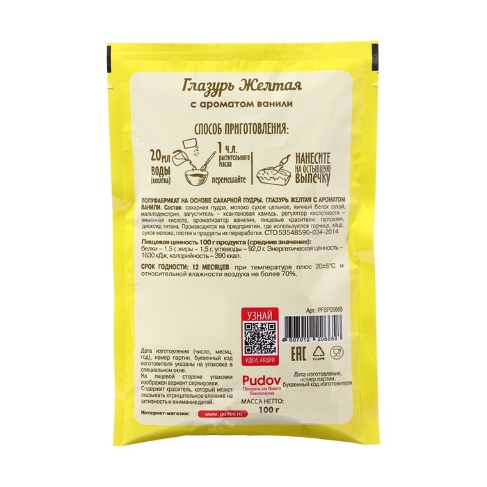 Сахарная глазурь «С. Пудовъ», жёлтая, 100 г