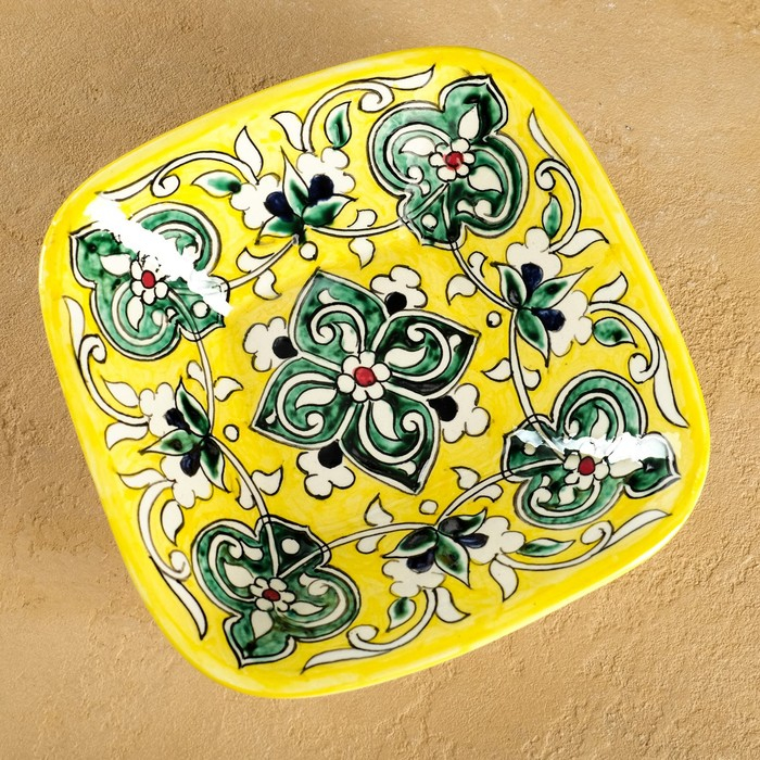 Салатница Риштанская Керамика "Цветы", 17 см, желтая