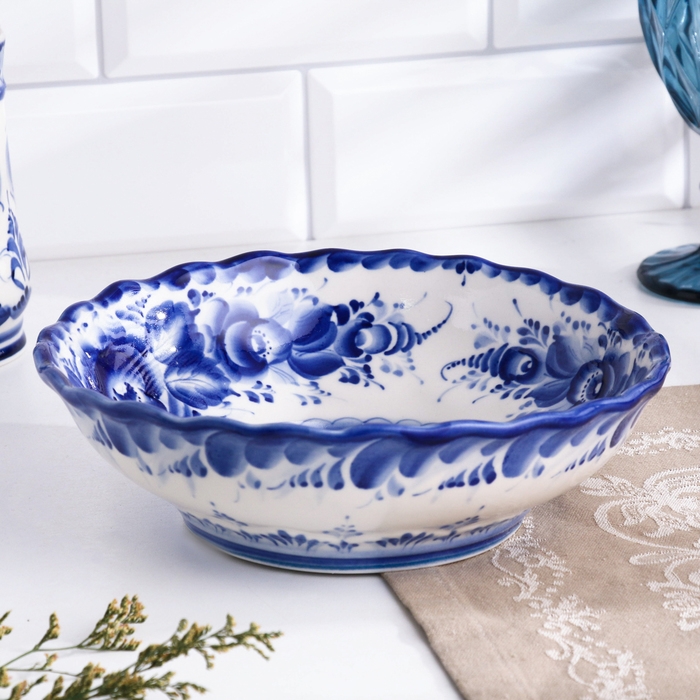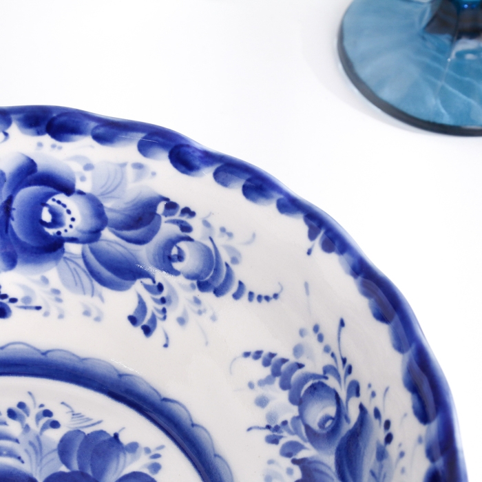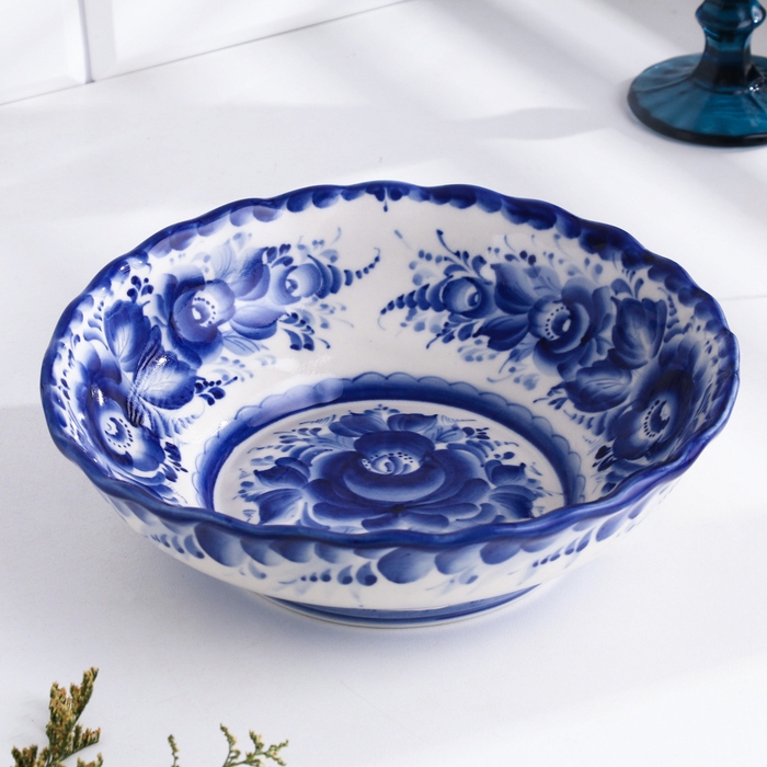 Салатник "Цветы", большой, 7 х 22 см, гжель