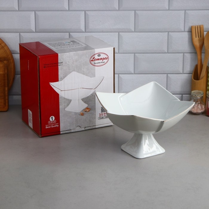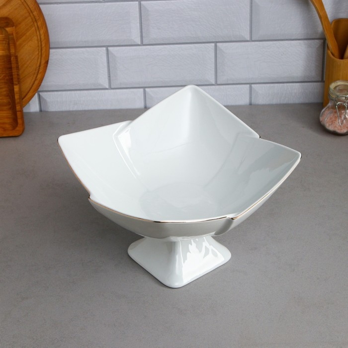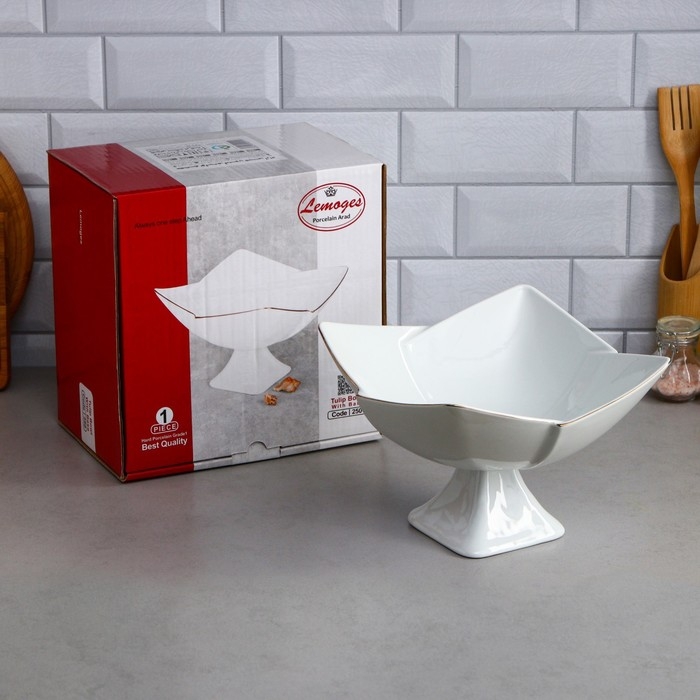Салатник «Тюльпан», с подставкой, 2 л, золотая обводка, фарфор, Иран