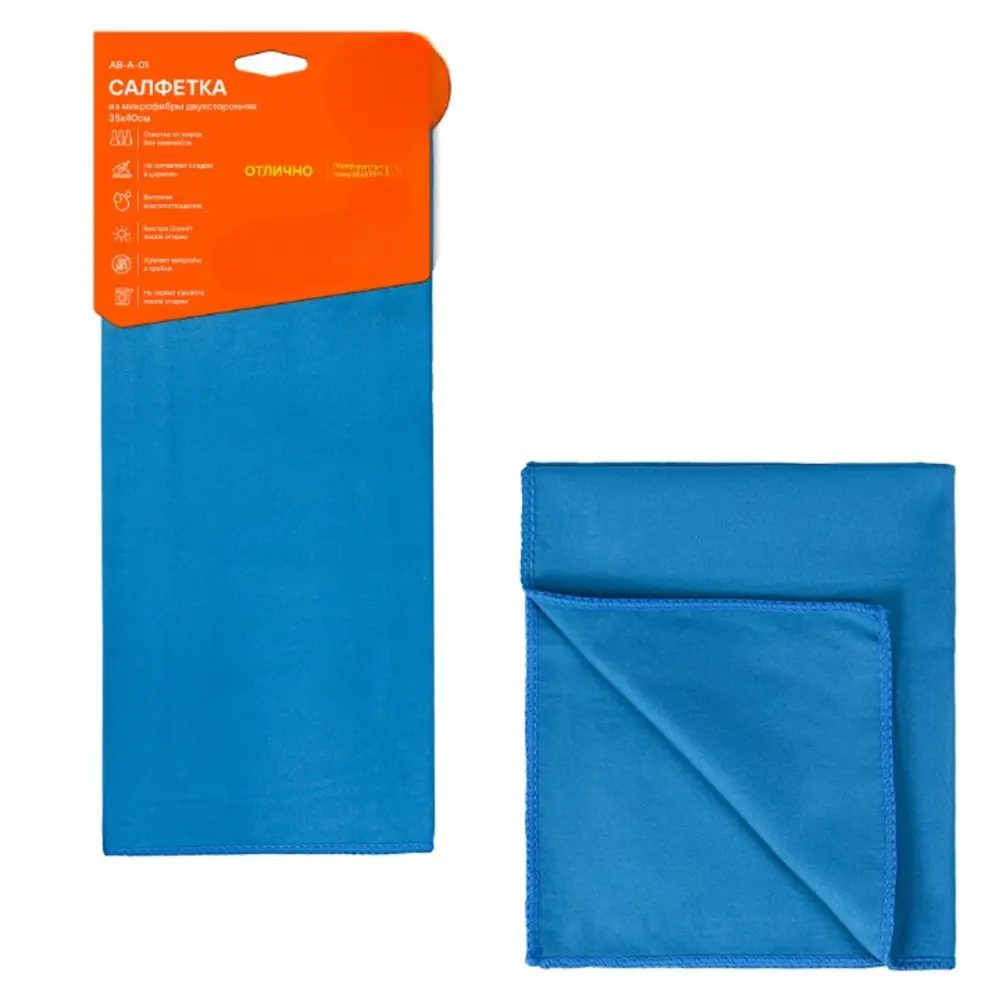 Салфетка из микрофибры двухсторонняя поможет удалить загрязнения в доме, а благодаря двухсторонней поверхности изделия уборка станет намного удобнее. Салфетка изготовлена в синем цвете и имеет с двух сторон покрытие тонкого слоя ворса из микрофибры. Салфетка не только удаляет загрязнения, но и не оставляет разводов.