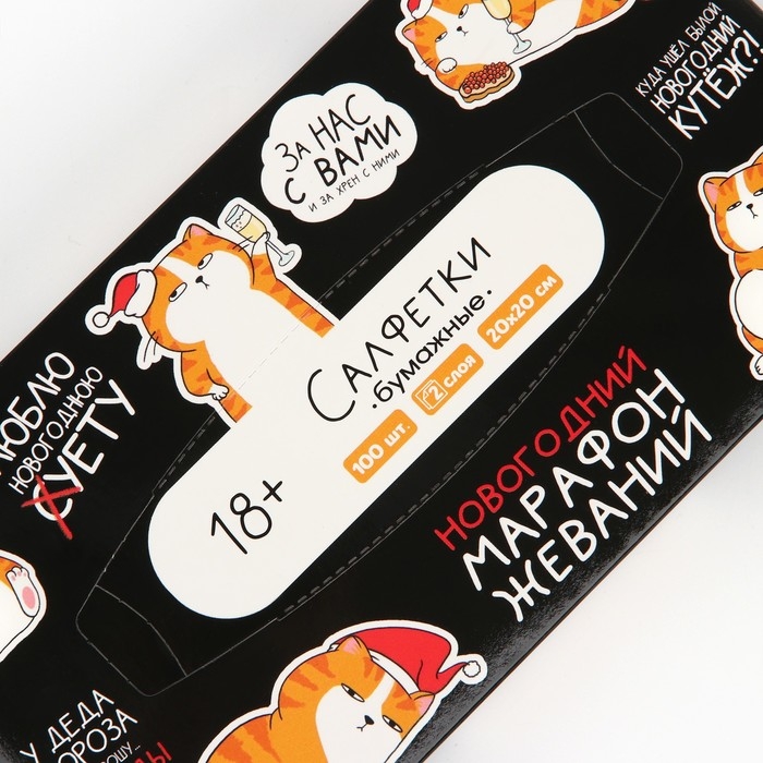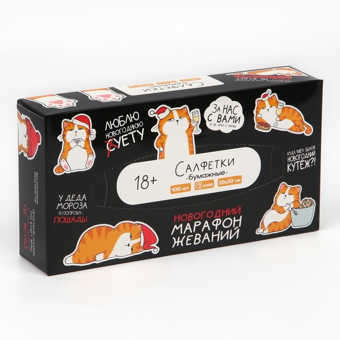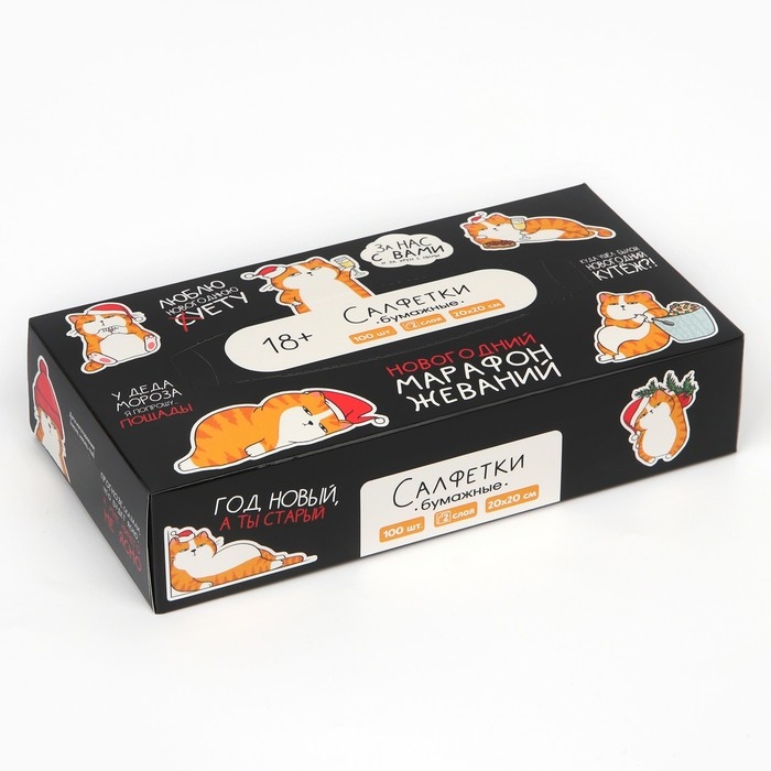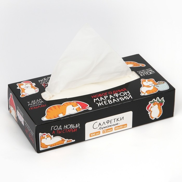 Салфетки бумажные в коробке «Новый год! Котяра», 100 шт, двухслойные