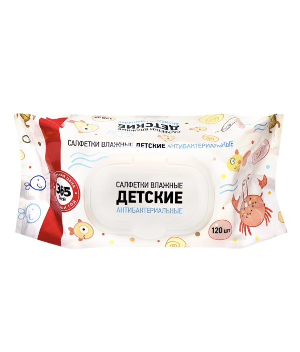 Салфетки влажные ДЕТСКИЕ антибактериальный "365 дней" 120 штук