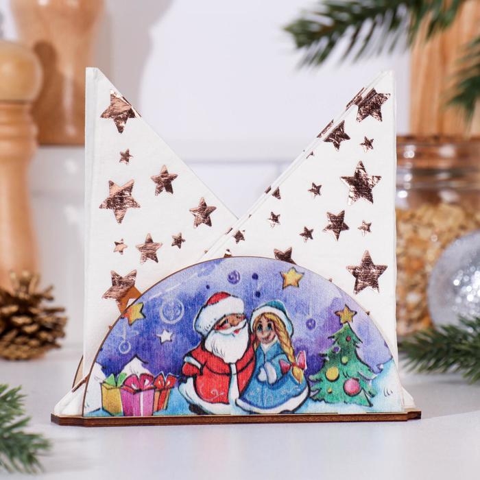 Салфетница "Дед Мороз и Снегурочка с подарками", 13,5×3,1×6 см