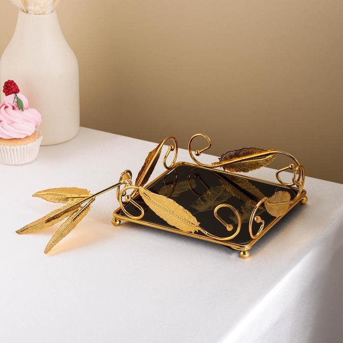 Салфетница «Перо», 17×17×6 см, цвет металла золотой