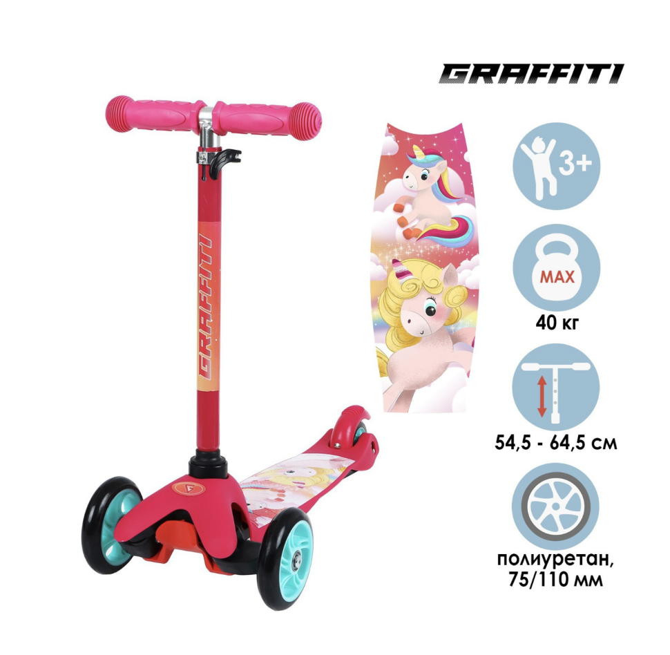 Самокат GRAFFITI «Единорожки», колёса PU 110/75 мм, ABEC 7, цвет розовый