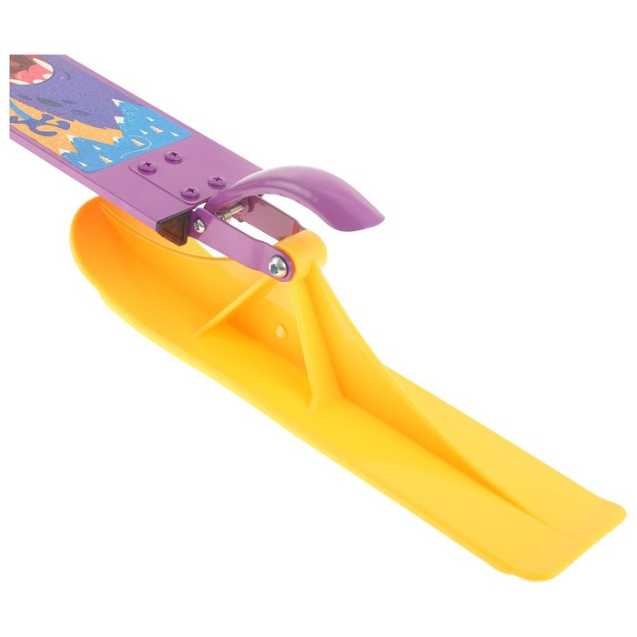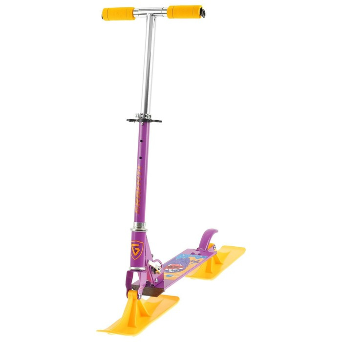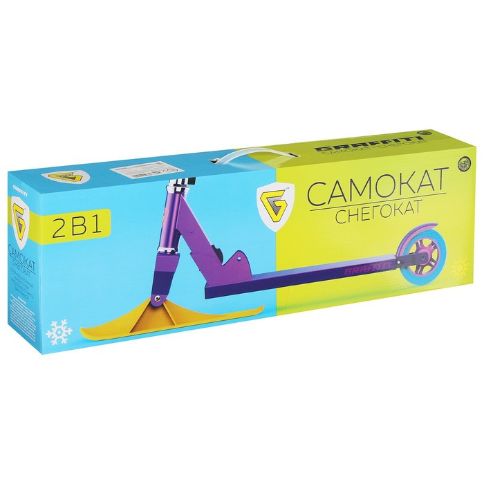 Детский самокат-снегокат — новая модель для летнего и зимнего активного отдыха. Конструкция представляет собой раму самоката, на которую установлены лыжи. Передняя лыжа управляется поворотом руля. Колёса можно установить в любой момент, для этого в комплекте есть всё необходимое.