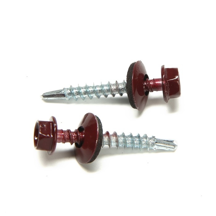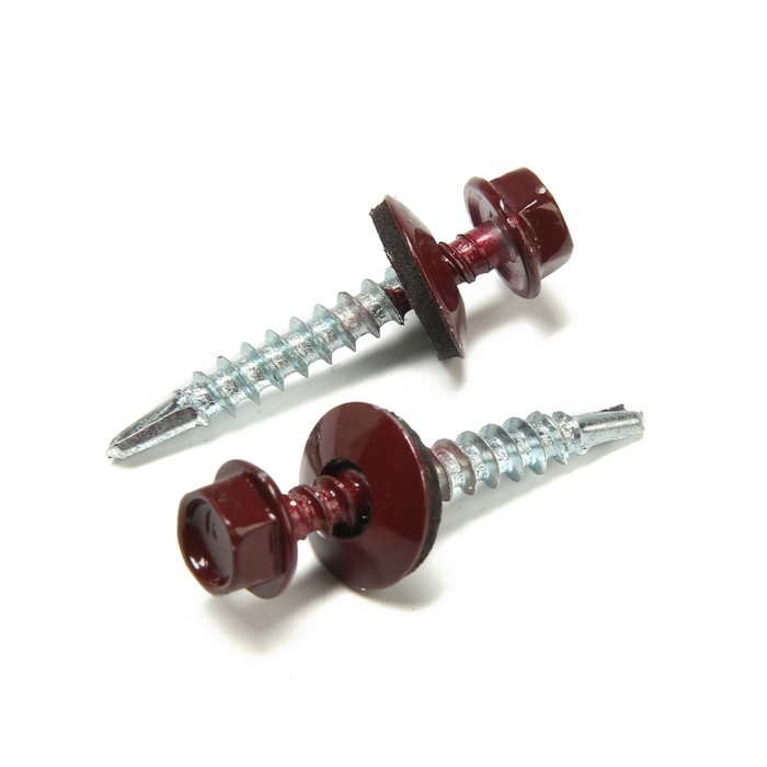 Саморезы кровельные 4,8х35 мм, RAL3005 цвет бордовый, 250 шт.