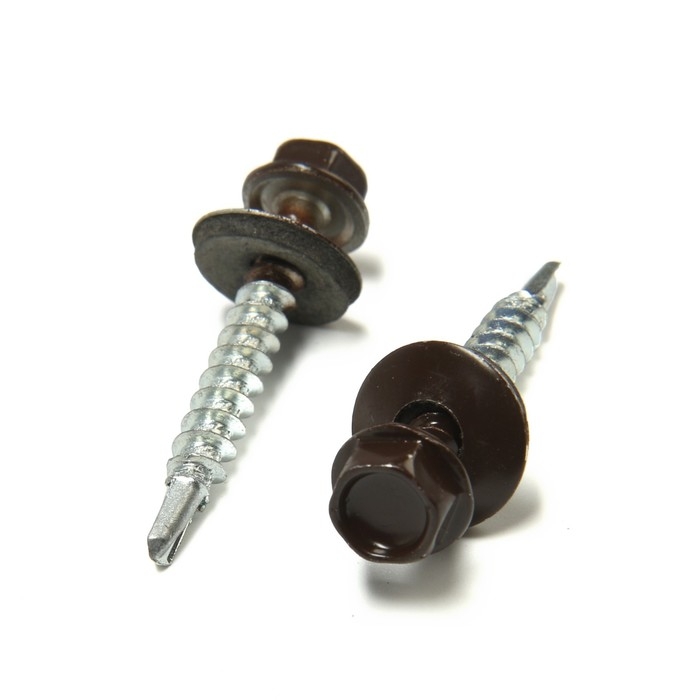 Саморезы кровельные 4,8х35 мм, RAL8017 цвет коричневый, 250 шт.