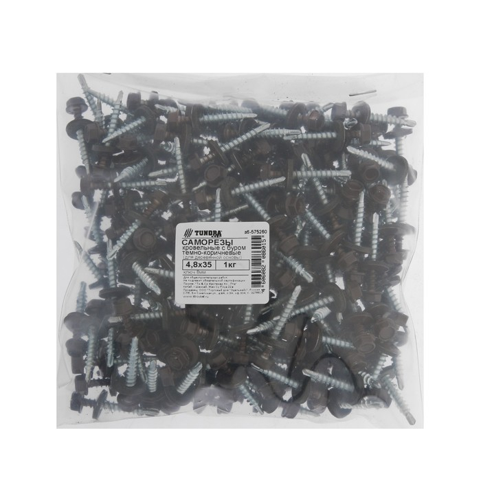 Саморезы кровельные ТУНДРА krep с буром 4.8x35 мм, темно-коричневый 1 кг