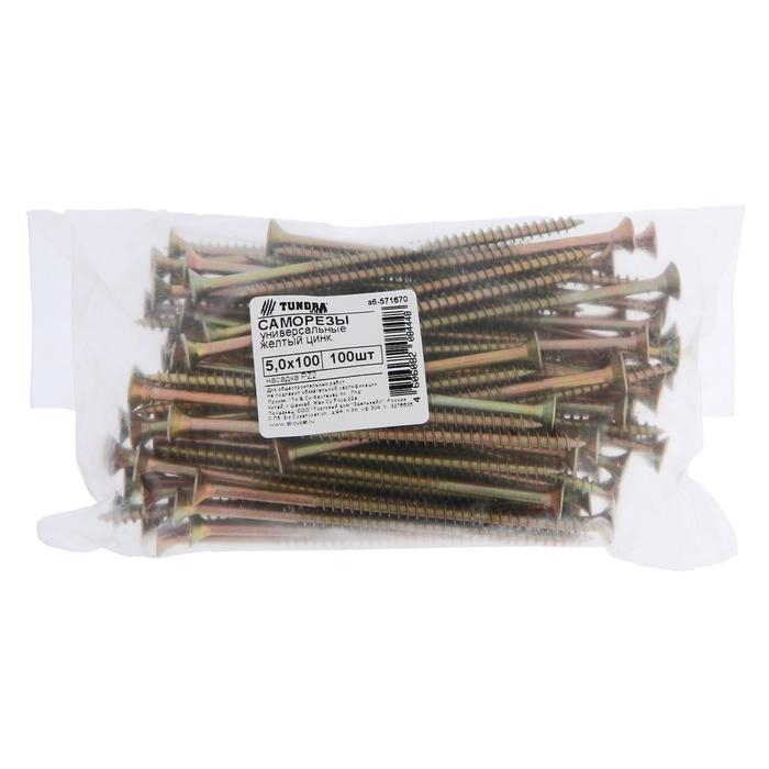 Саморезы универсальные ТУНДРА krep 5.0x100 мм, желтый цинк, 100 шт.