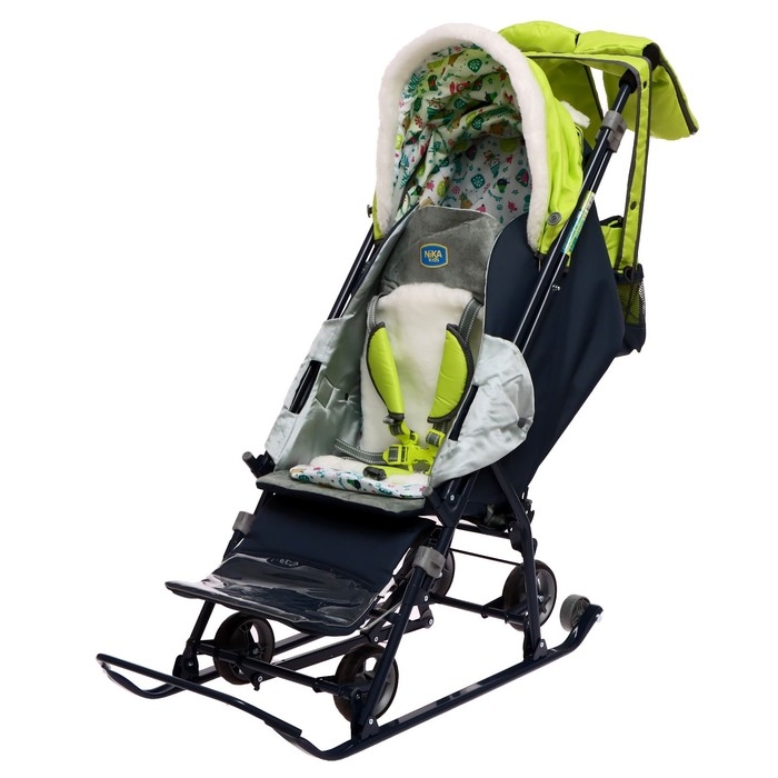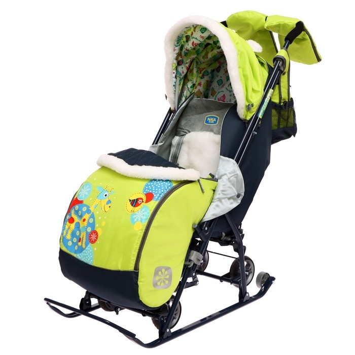 Санки-коляска «Наши детки 5-1» с жирафом, цвет лимонный