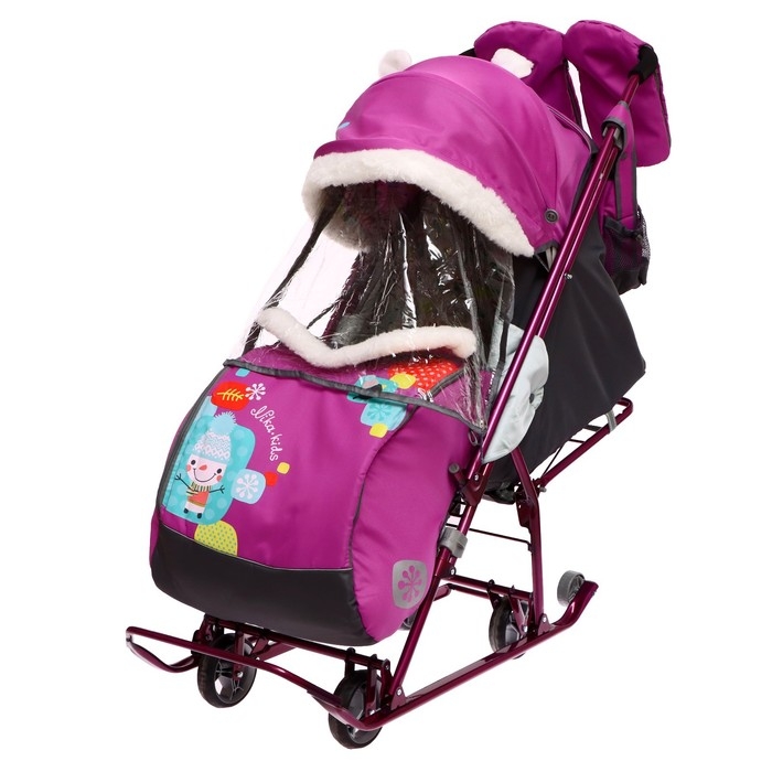 Санки-коляска «Наши детки 5-1» со снеговиком, цвет орхидея