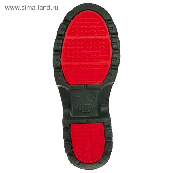 Особое внимание следует обратить на подошву сапог из ЭВА с ТЭП вкладками. ТЭП – это эластичный полимер, устойчивый к деформациям и стойкий к истиранию. ТЭП подошва защищает сапоги от проколов и, благодаря специальному рисунку протектора «зуб навстречу зубу», позволяет уверенно держаться на любых поверхностях.