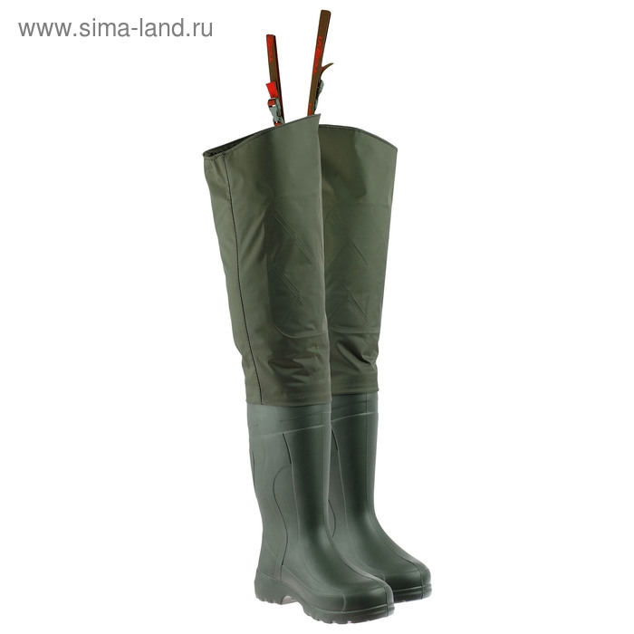 Болотники выполнены на базе модели TORVI универсал. К сапогу из материала ЭВА герметично прикреплён верх из нейлона с ПВХ покрытием. Имеют комфортную колодку. Просторное голенище сапога и специальная засечка на пятке позволяют легко снимать сапоги. Специальные наплывы из ЭВА защищают нос и пятку от случайных ударов.
