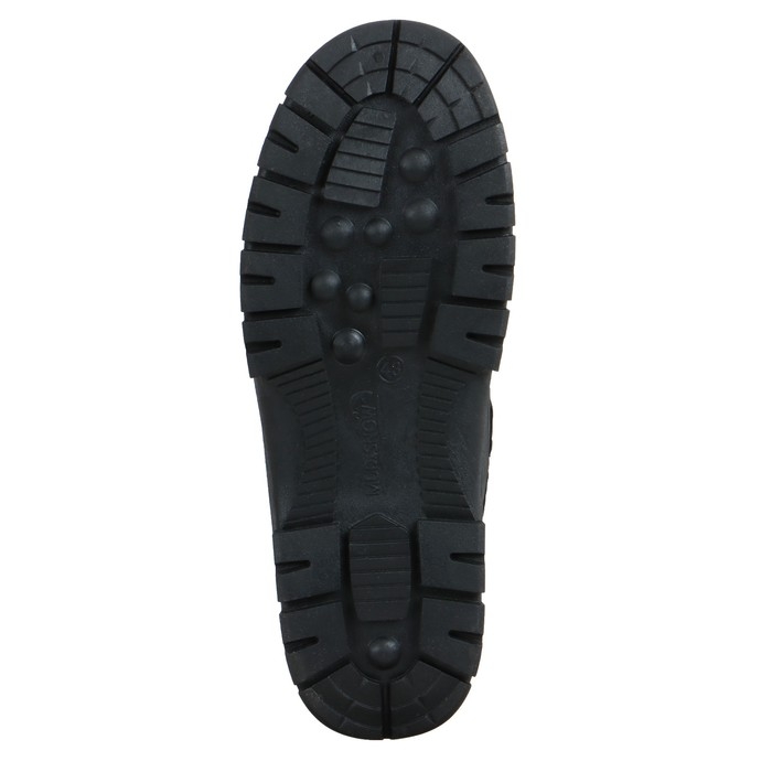 Комбинированные зимние сапоги (сноубутсы) на основе прочной галоши из термоэластопласта. Верх изготовлен из водоотталкивающей ткани, дублированной поролоном. Внутри сапоги утеплены искусственным мехом Верх сапог изготовлен из водонепроницаемого материала Оксфорд, комбинированного с утеплителем из поролона. На внешней стороне голенища выполнен клапан для удобства надевания/снятия с текстильной застежкой (велькро). В нижней передней части голенища вставка из синтетического материала со световозвращающим кантом. Утеплитель - искусственный мех. Галоша из термоэластопласта (ТЭП) пристрочена к верхней части сапог, в носовой части галоши - дополнительная усилительная накладка из ТЭП.