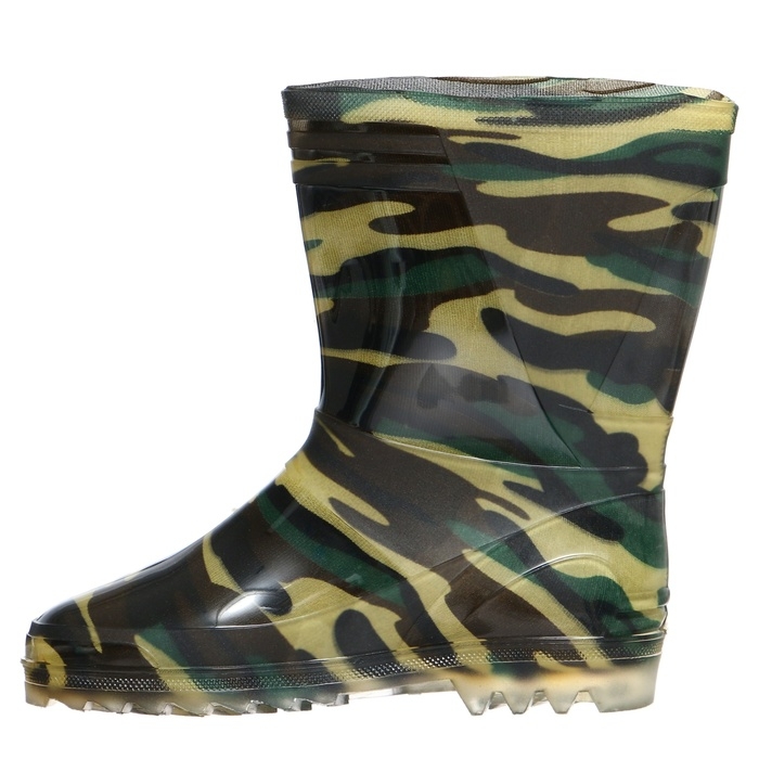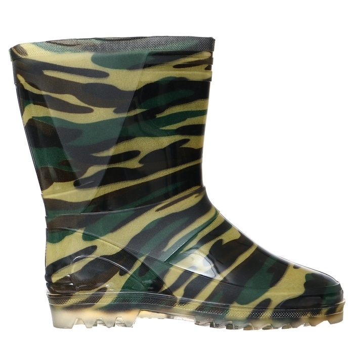 Сапоги мужские изготовлены из ПВХ и предназначены для защиты ног от промокания и загрязнений. Выполнены по технологии однокомпонентного литья методом горячего формования, внутри — тканевое покрытие. Протектор подошвы обладает противоскользящими свойствами. Сапоги удобны и практичны. Нижний температурный предел — -5ͦ. Выполняется с использованием цветных текстильных чулок.