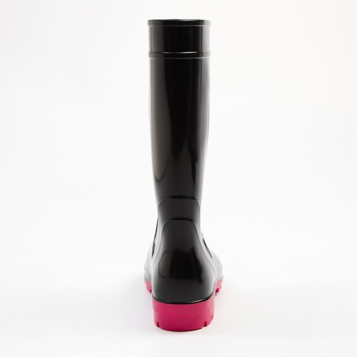 Сапоги резиновые женские, черный+розовый, размер 39
