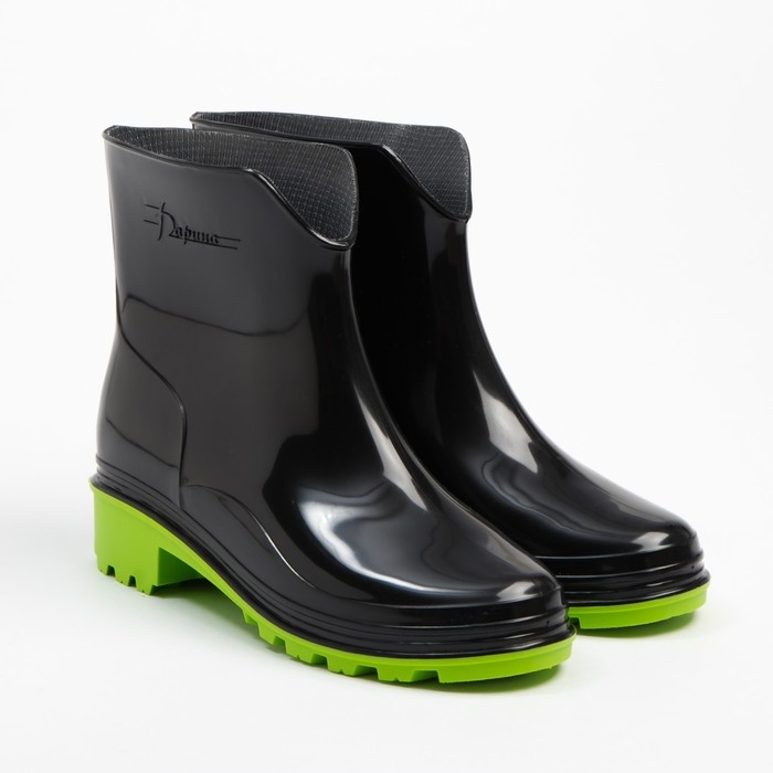 Сапоги резиновые женские, черный+салатовый, размер 36