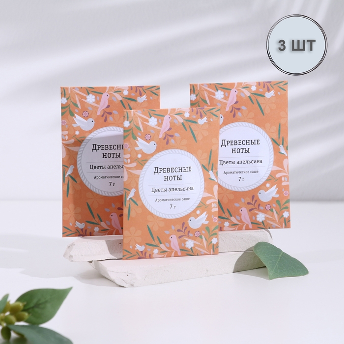 Саше ароматическое "Древесные ноты", набор 3 шт, цветы апельсина, вес 7г, 7х10,5 см