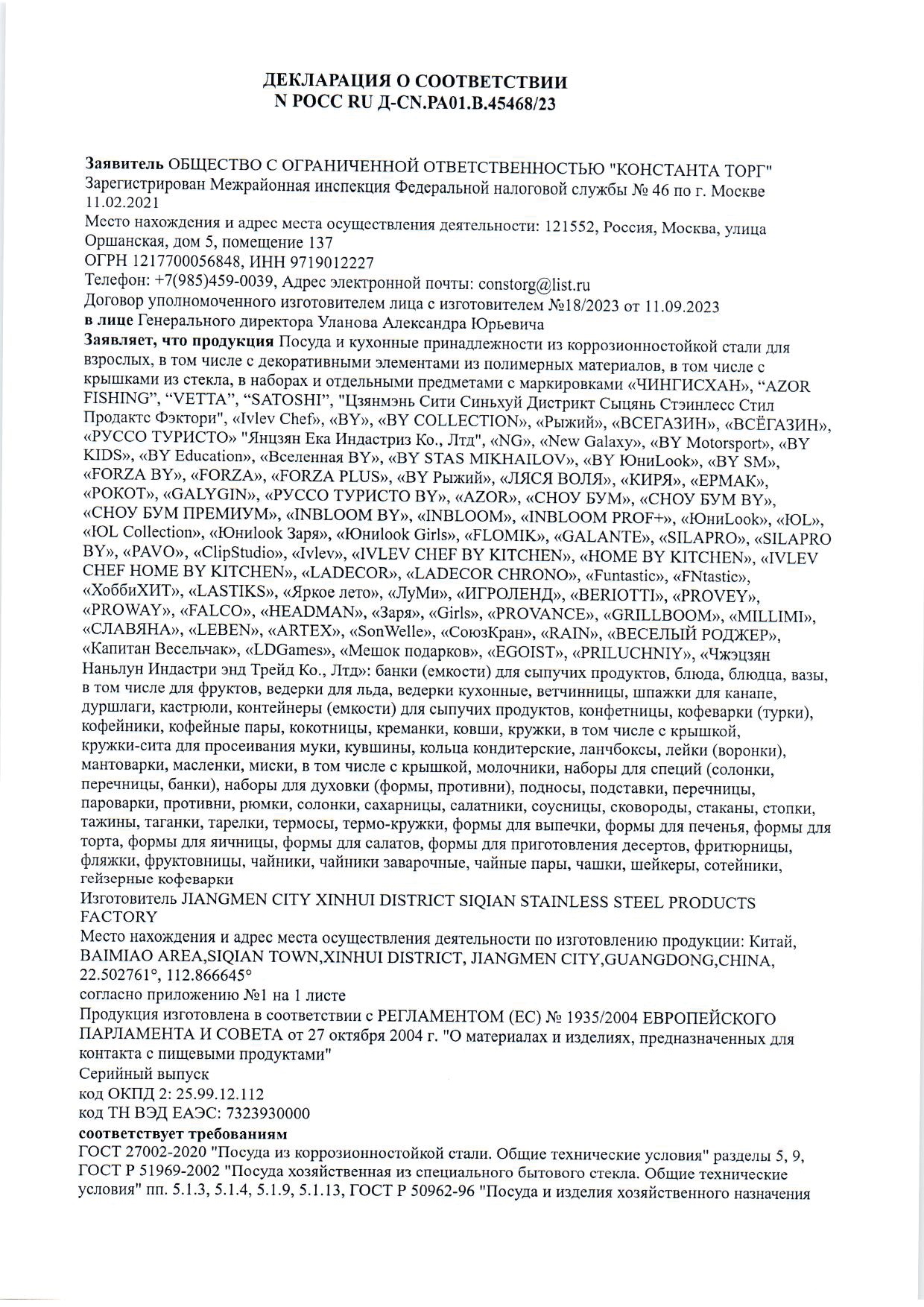 *объем кастрюли указан при наливании жидкости до краёв.