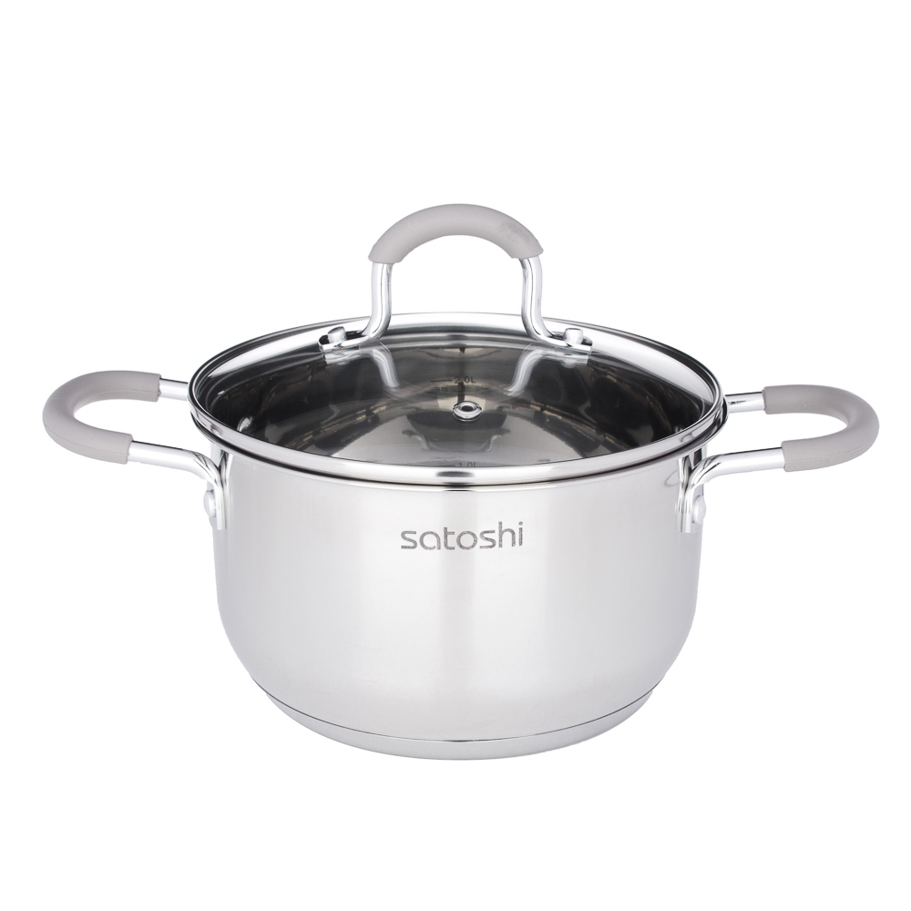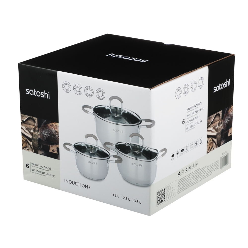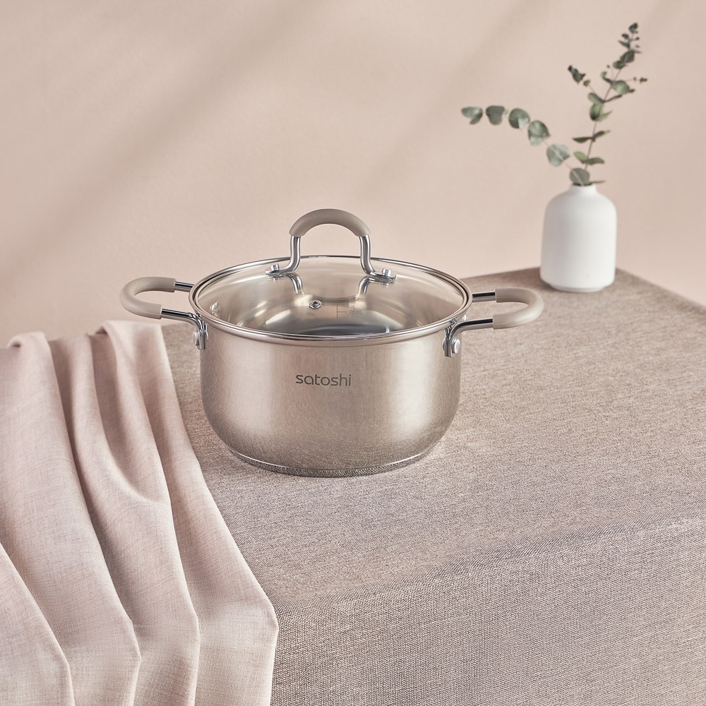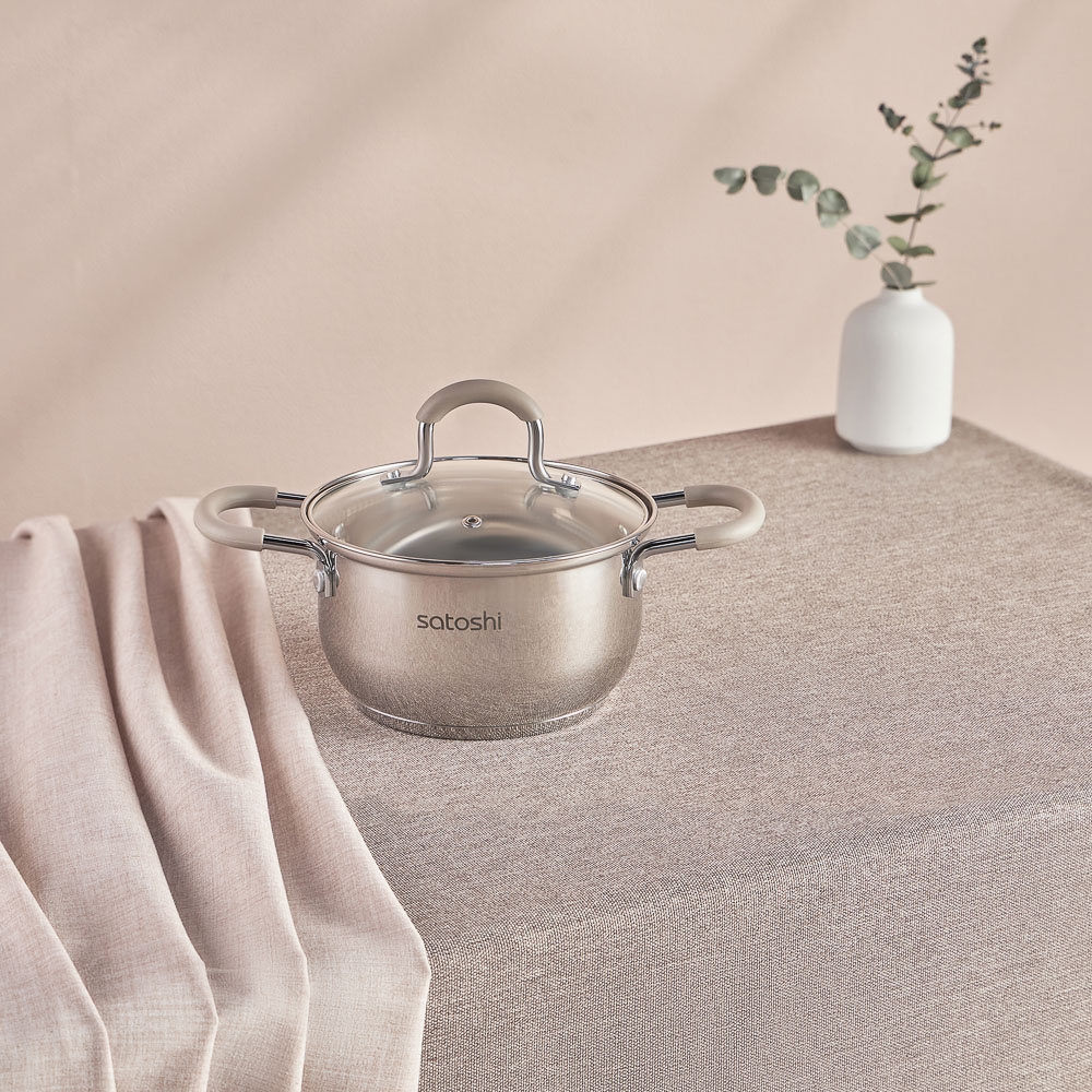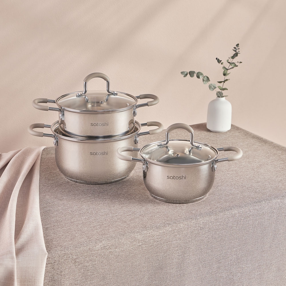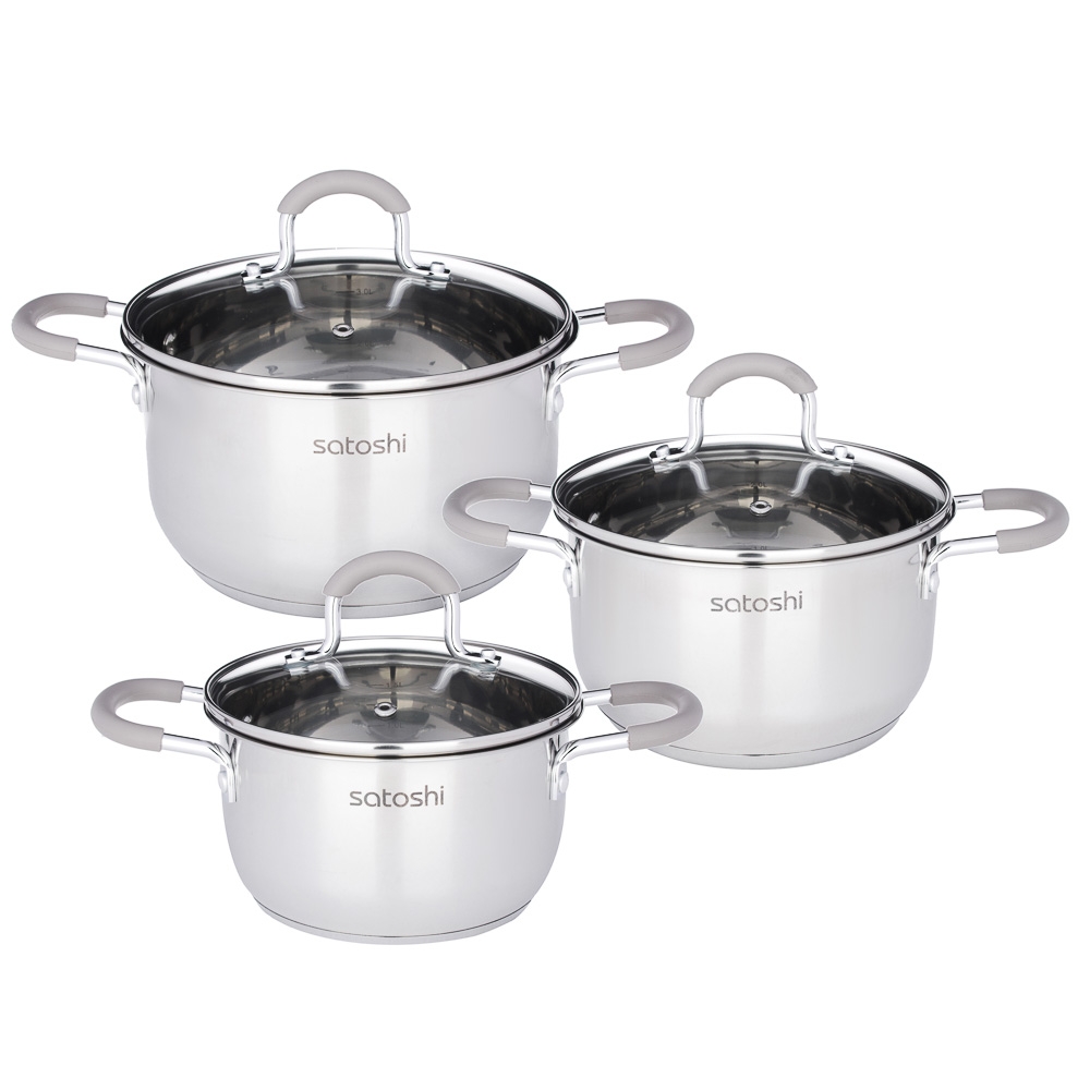 SATOSHI Альбер Набор кастрюль 6 пр.: 1,8л, 2,5л, 3,5л, бежевые силиконовые ручки, со стекл. крышкой
