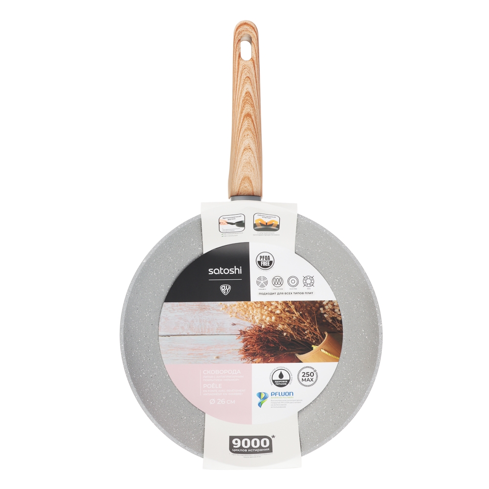 SATOSHI Берг Сковорода литая d26см, антипригарное покрытие Мрамор, индукция