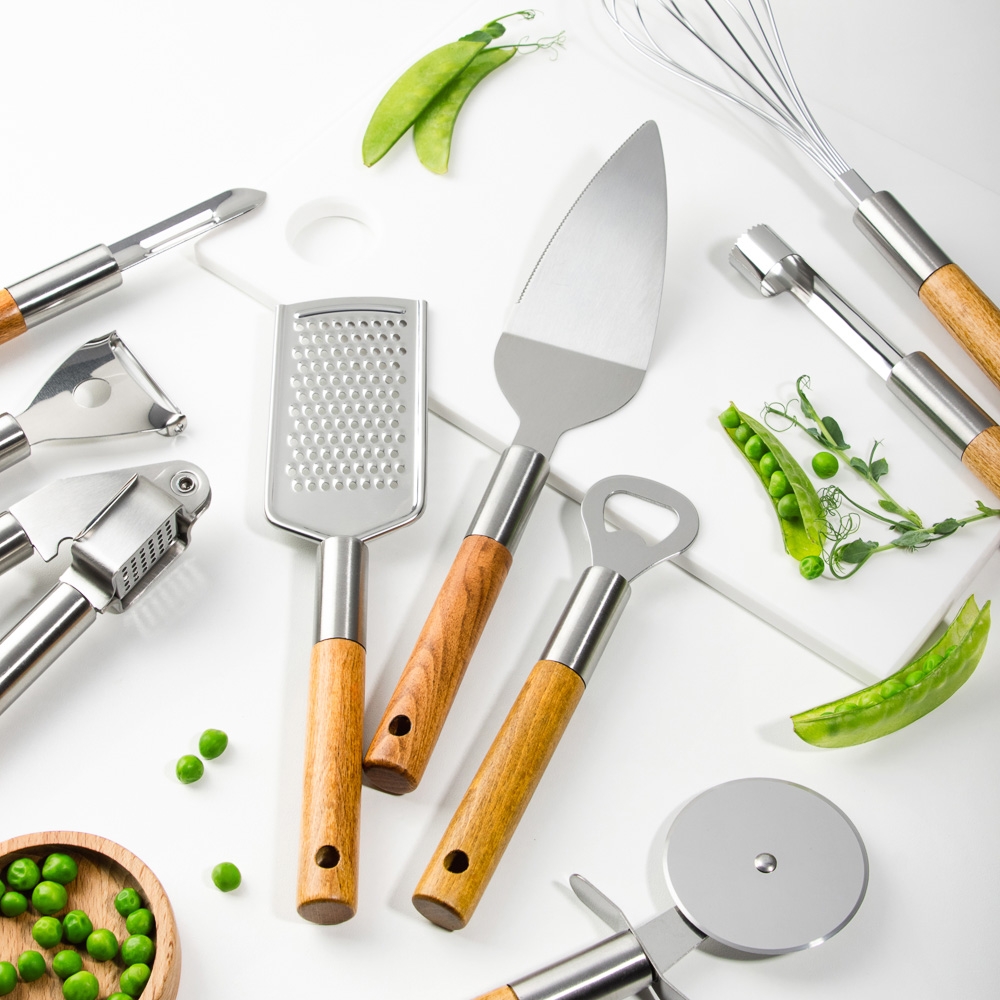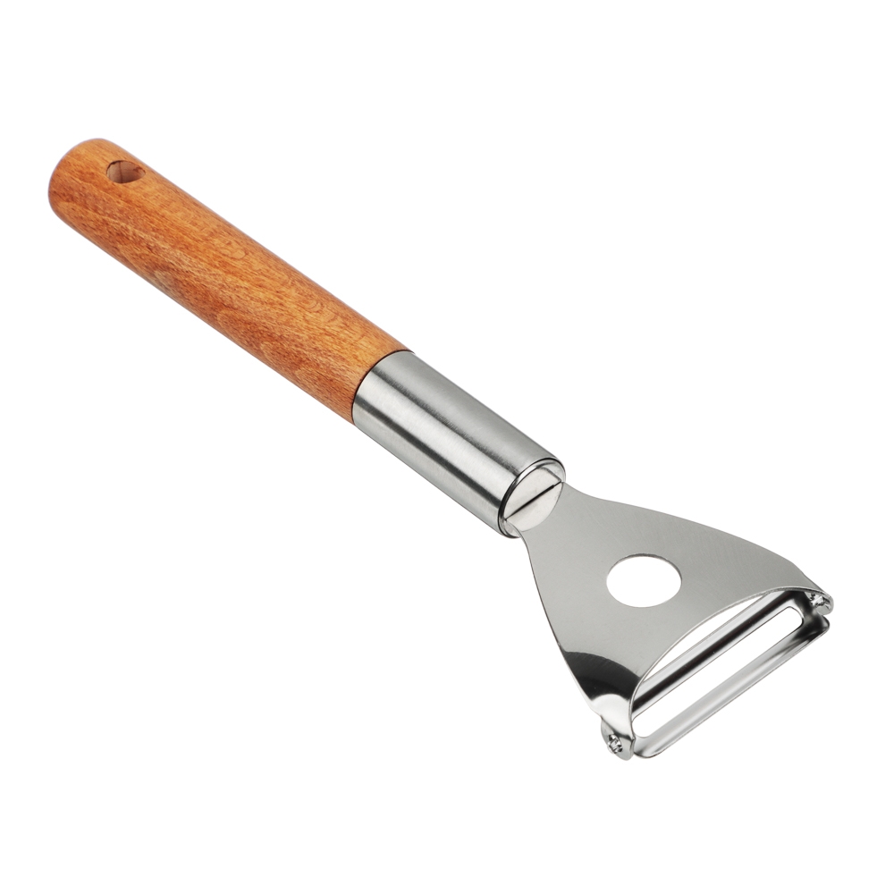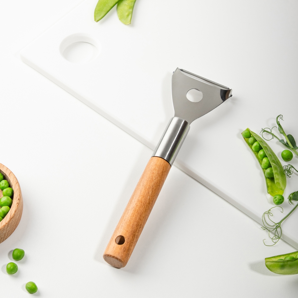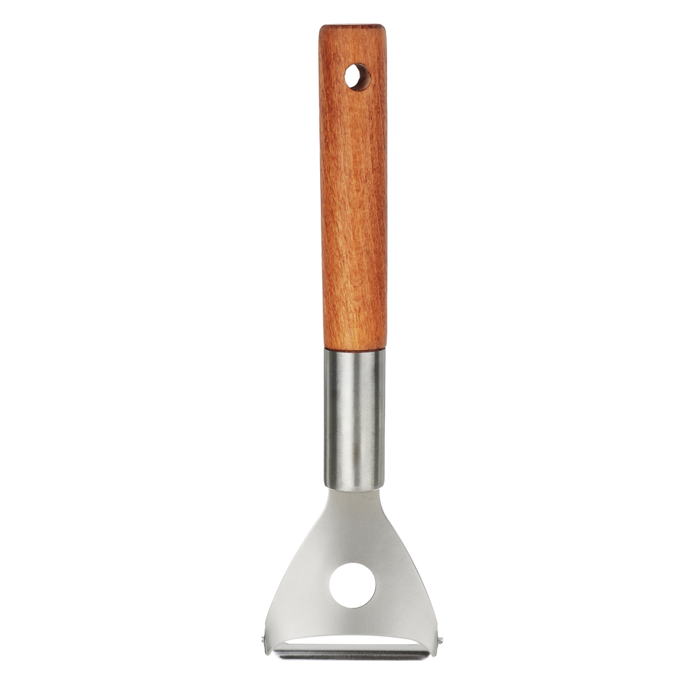 Овощечистка Satoshi с рабочим элементом из нержавеющей стали и ручкой из бука – незаменимый инструмент на кухне для чистки картофеля и других овощей, а также фруктов. Острый нож тонко и эффективно удаляет кожицу с продуктов без затрат усилий со стороны пользователя. Хорошо сохраняет заточку, легко моется, а экологичная рукоять смотрится эстетично и благородно. Изделие дополнит коллекцию кухонных принадлежностей Эко.