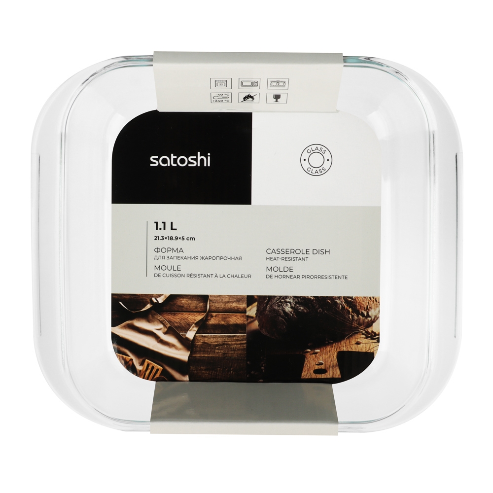 SATOSHI Форма для запекания жаропрочная квадратная, с ручками, стекло, 21,3x18,9x5см, 1,1л