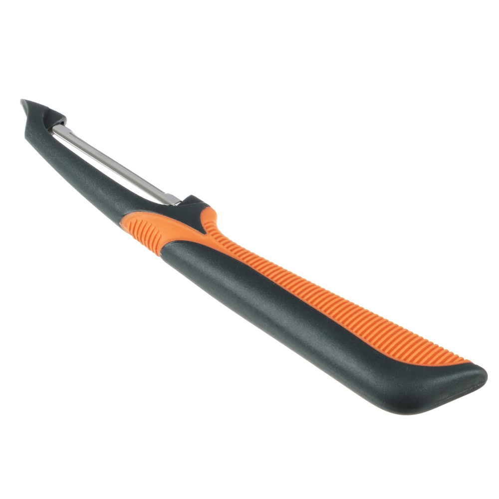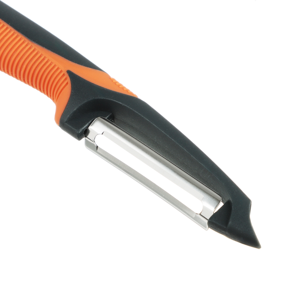 Вертикальная овощечистка SATOSHI «Фрей», 18 см с острым лезвием из нержавеющей стали поможет быстро и без труда почистить картофель, морковь, яблоки и другие овощи и фрукты. Лезвие имеет специальную геометрию, которая удаляет кожицу, снимая тонкий слой. Заостренный угол в верхней части овощечистки предназначен для удаления картофельных глазков. Рукоять с антискользящими накладками не выскальзывает из рук. Приспособление не требует заточки, надежное и долговечное.