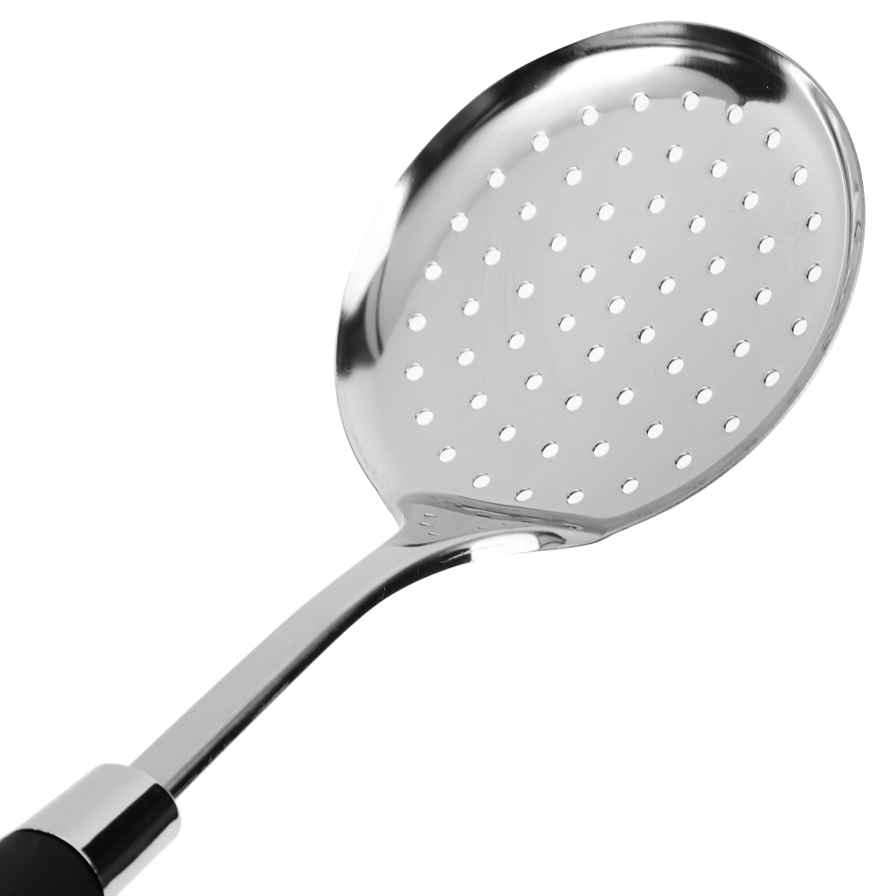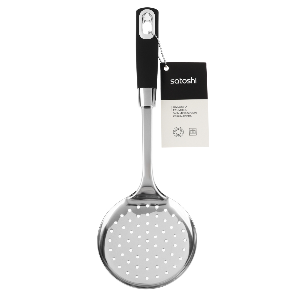 Шумовка SATOSHI Имари сделана из качественной нержавеющей стали. Она не впитывает посторонние запахи, не ржавеет, долговечна и устойчива к деформации. Шумовку применяют для снятия пены, а также с ее помощью удобно извлекать вторые блюда из жидкости. Она пригодится при приготовлении пельменей, вареников, креветок, картофеля фри. На ручке имеется отверстие для подвешивания.