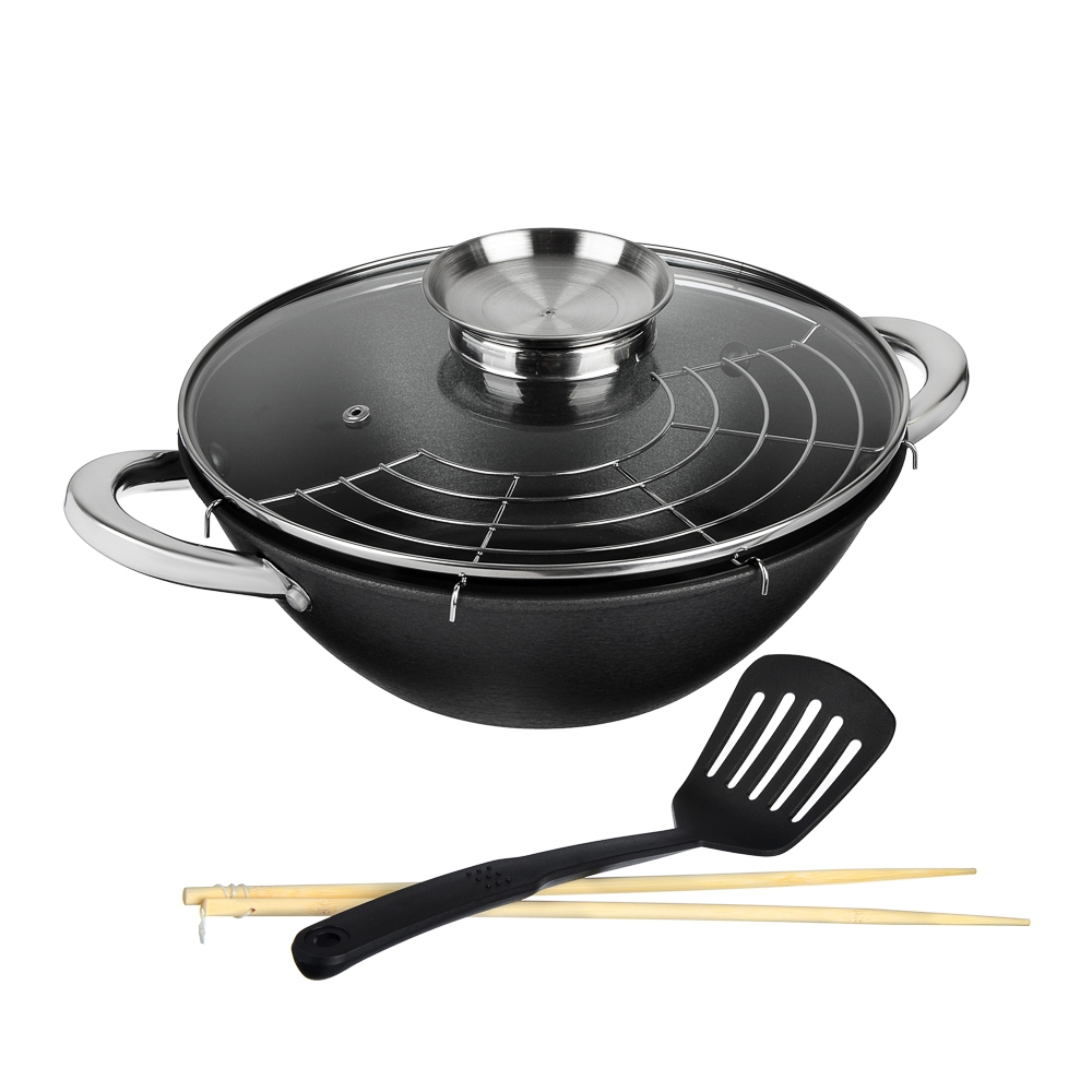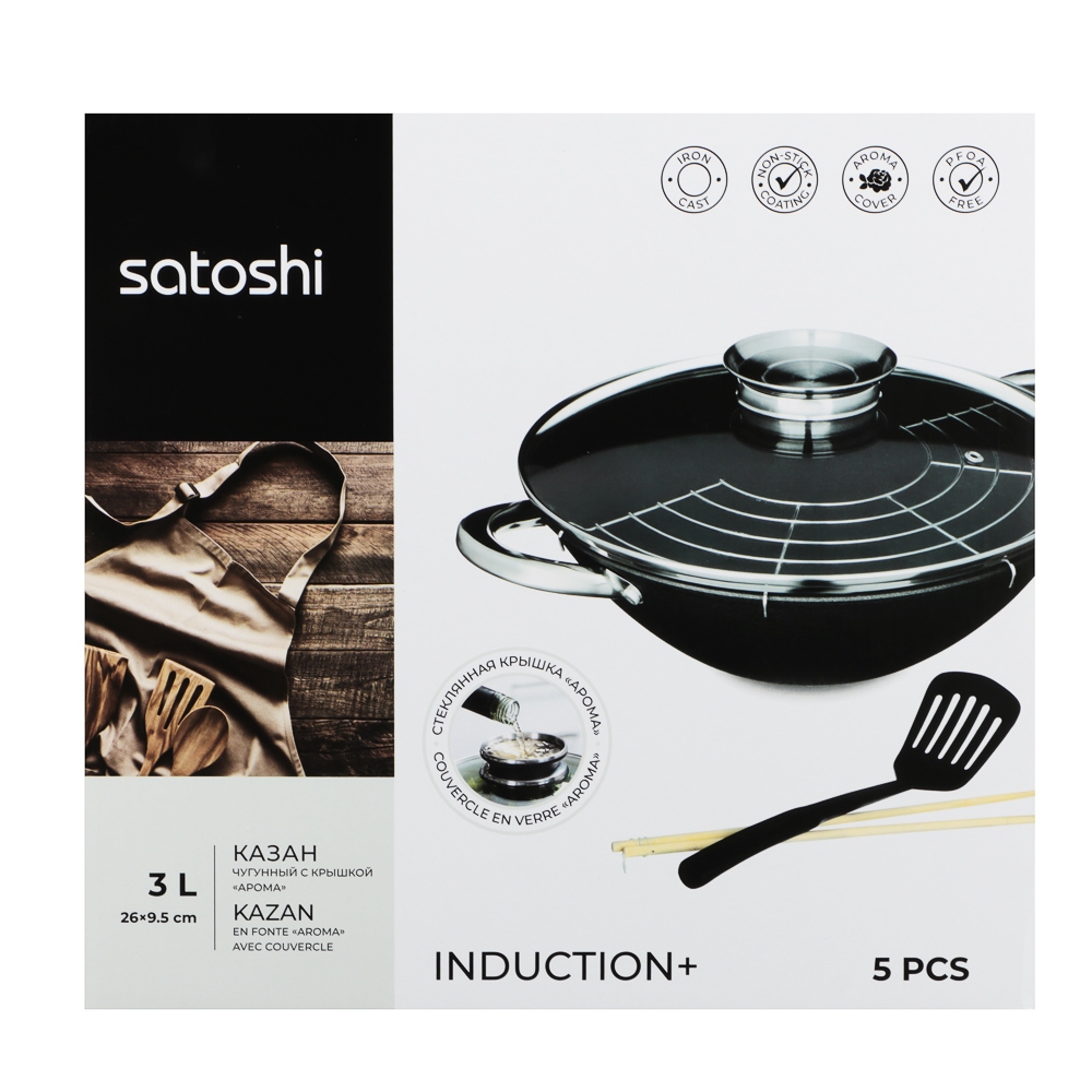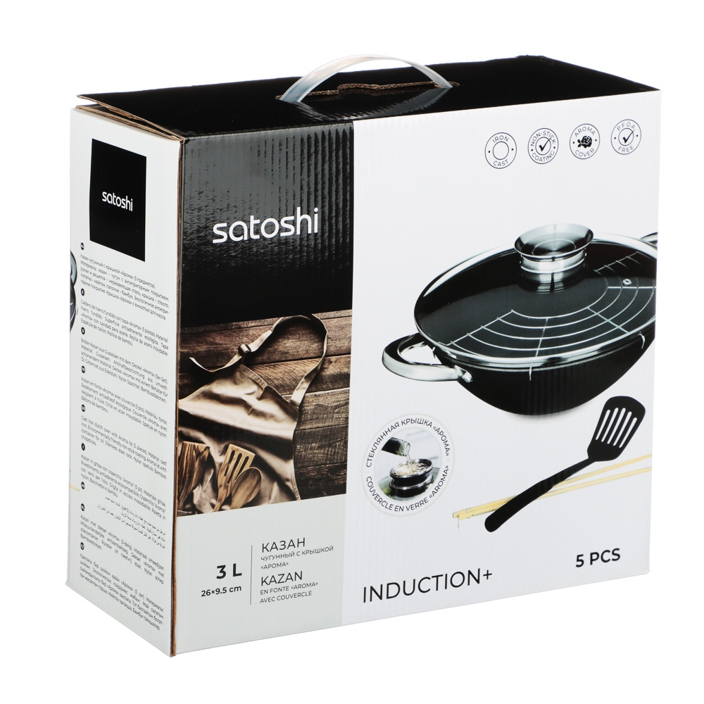 SATOSHI Казан чугун,26см,3л,антипр.покр, нерж.ручк, решетка, стекл.крыш,нейлон.лопатка,бамб.палочки