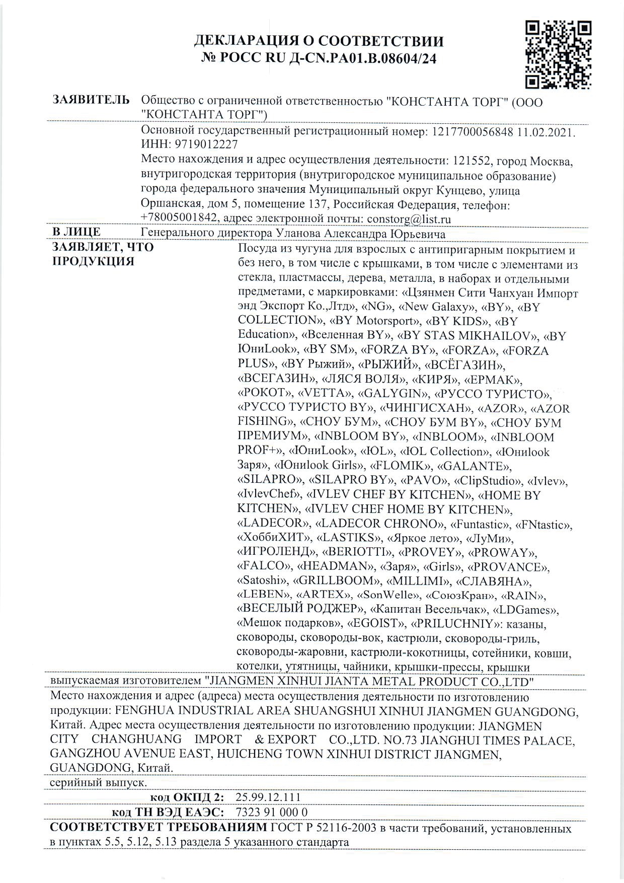 - Тип товара Казан