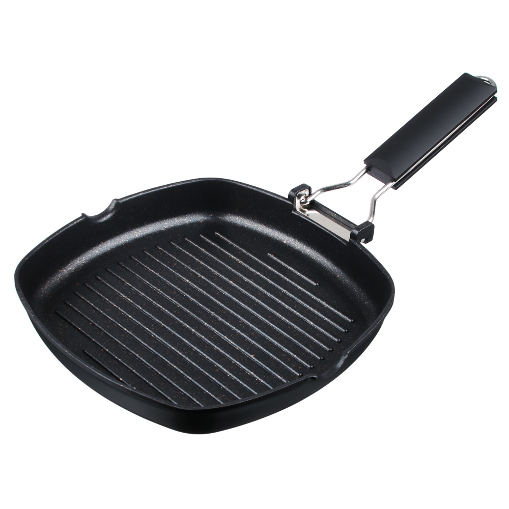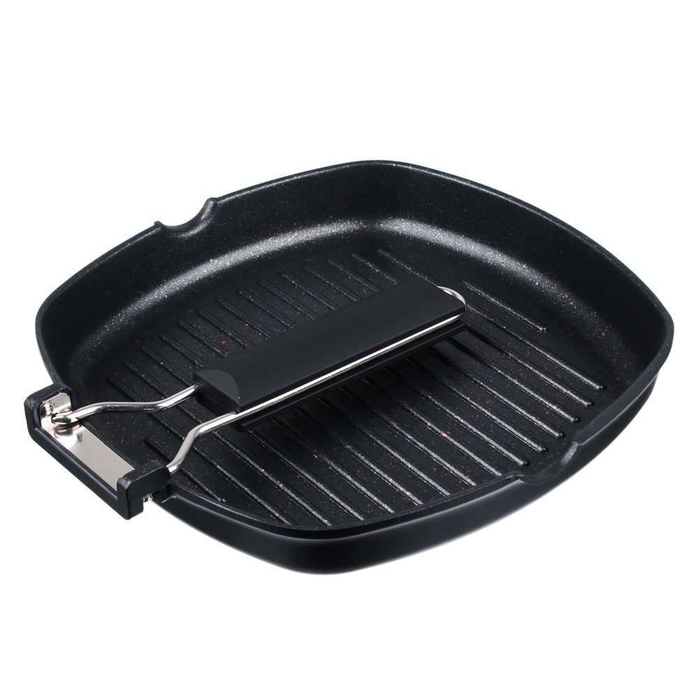 SATOSHI Кобальт Сковорода-гриль литая а/приг. покр. Мрамор, 24х24см, индукция, складная ручка