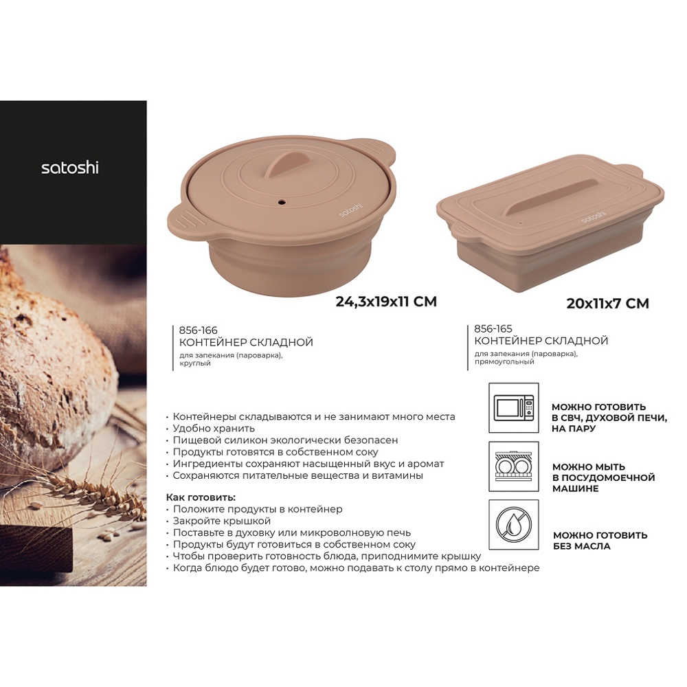 SATOSHI Контейнер складной для запекания (пароварка) 20х11х7см прямоугольный, силикон