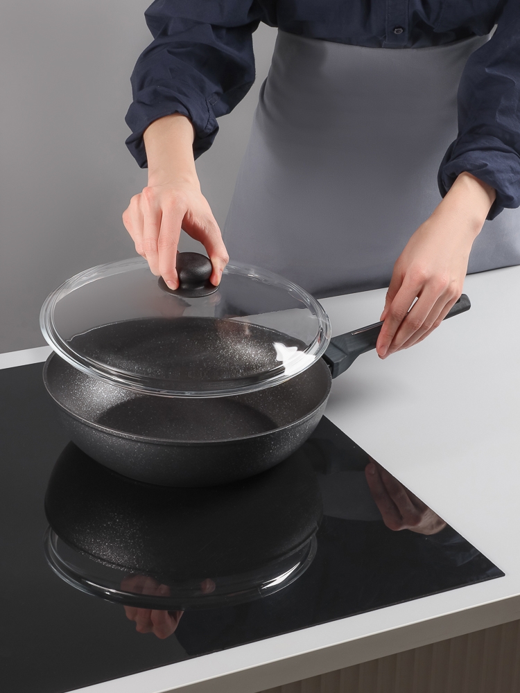 SATOSHI Крышка стеклянная безободковая с ручкой 28см