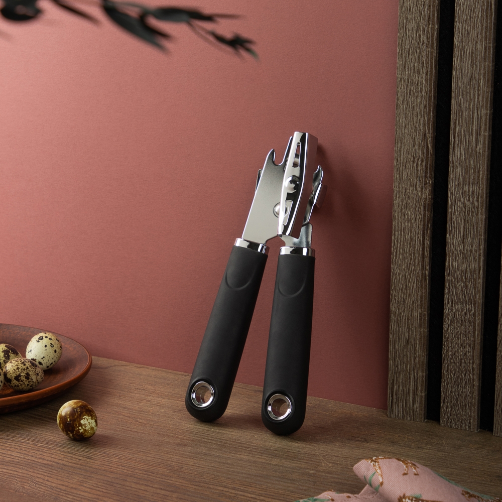 Консервный нож Satoshi «Лоран» предназначен для безопасного открывания банок и бутылок. Теперь открытие консервированной кукурузы, горошка или сгущенного молока не будет проблемой. Кухонный гаджет справляется с поставленной задачей за несколько секунд.
