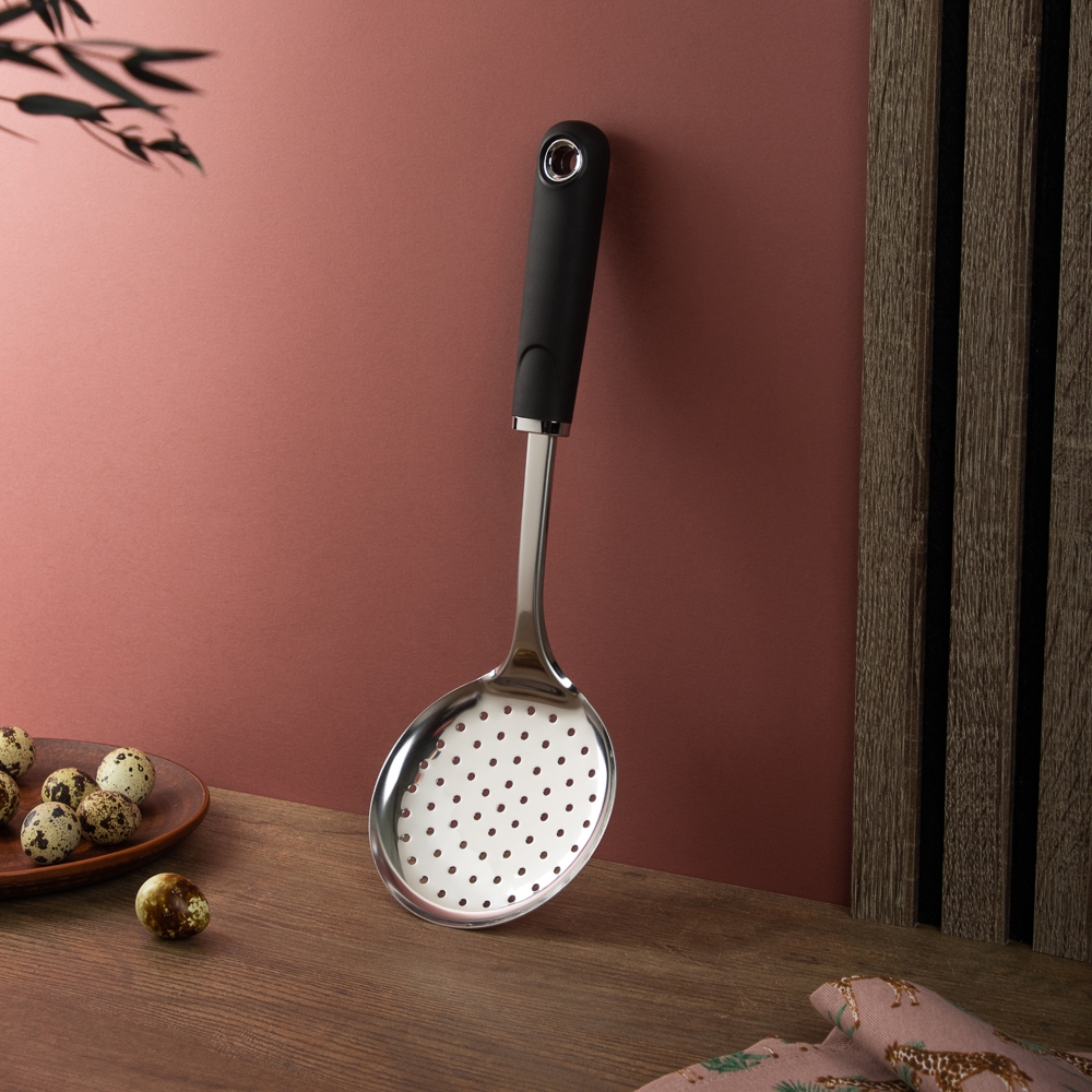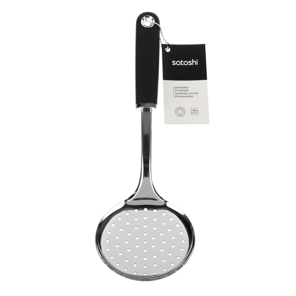 Шумовка SATOSHI «Лоран» предназначена для извлечения продуктов из супов и бульонов, а также для подачи готовых блюд. Прорези на шумовке позволяют стекать излишкам масла, соуса или жидкостей. Удобная ручка из нержавеющей стали, имеет классическую форму и снабжена петлей для размещения. Изделие легко моется - можно мыть в посудомоечной машине. Надежное решение для выполнения любой задачи на кухне!