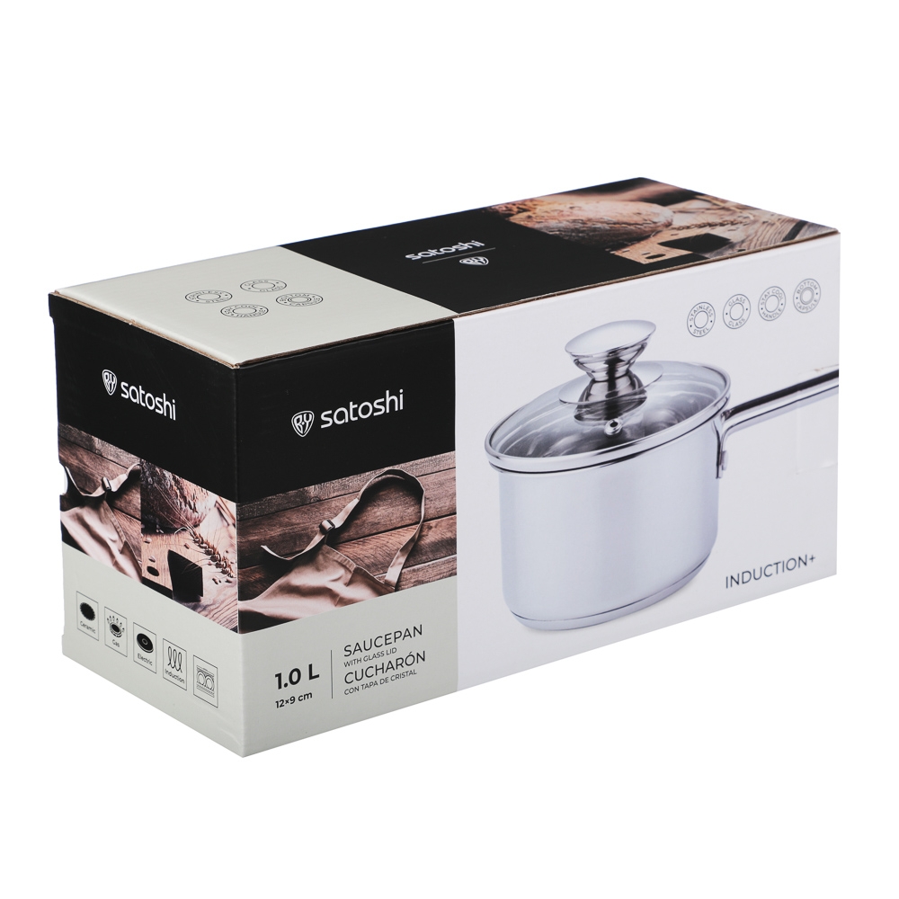 SATOSHI Мини Ковш 12х9 см, объем 1 л, со стеклянной крышкой, индукция