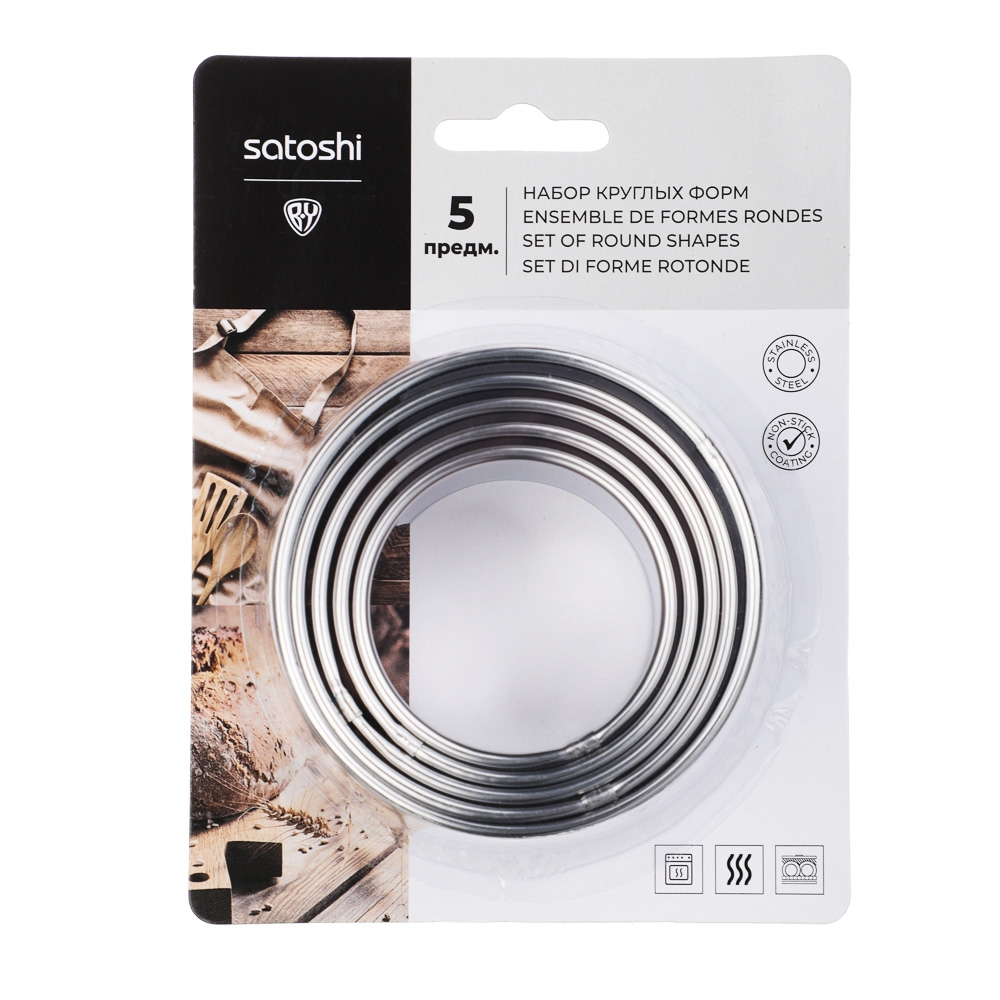 SATOSHI Набор форм для печенья/салатов/десертов 5 предметов, 5,2-6-6,8-7,6-8,5х3 см, нержавеющая сталь